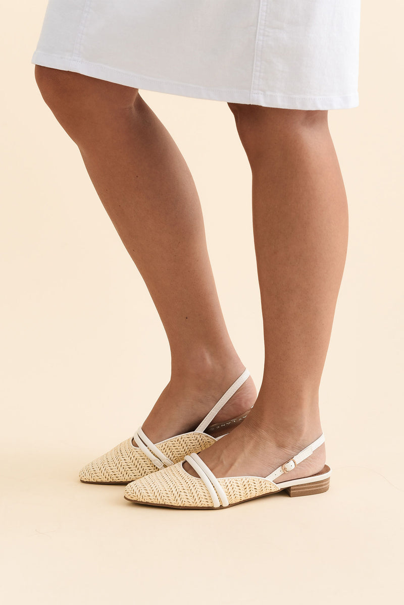 Abby Cream Raffia Leather Slingback Mule