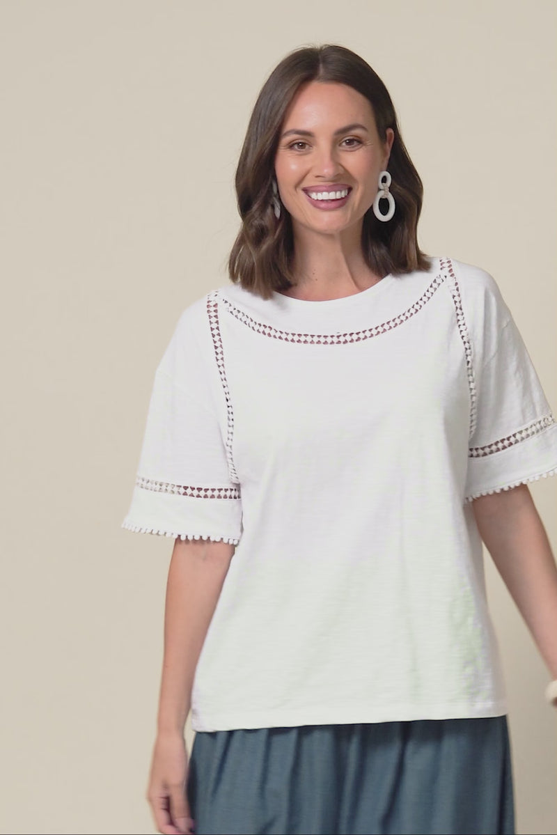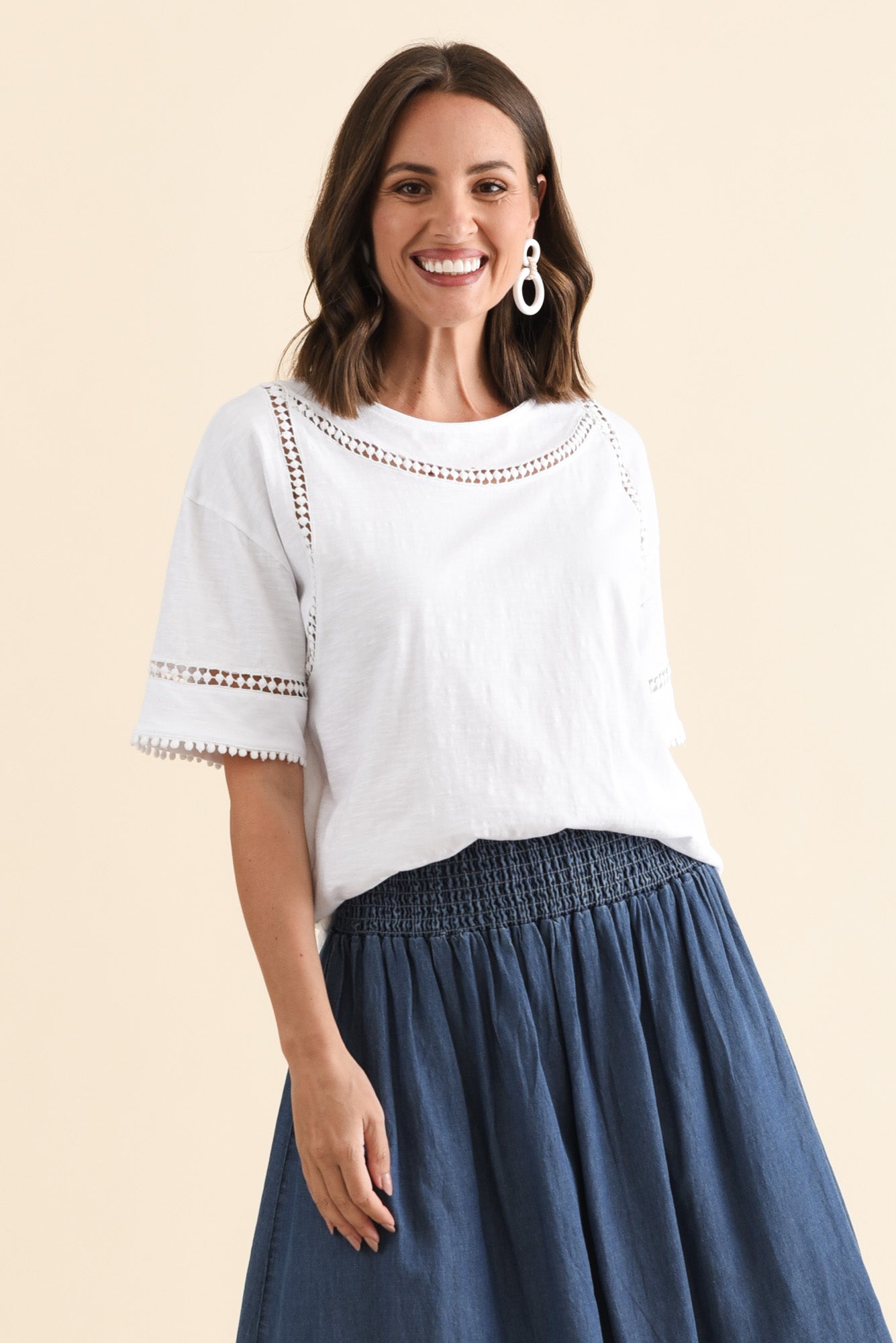 ABIGAIL WHITE EMBROIDERED COTTON TOP