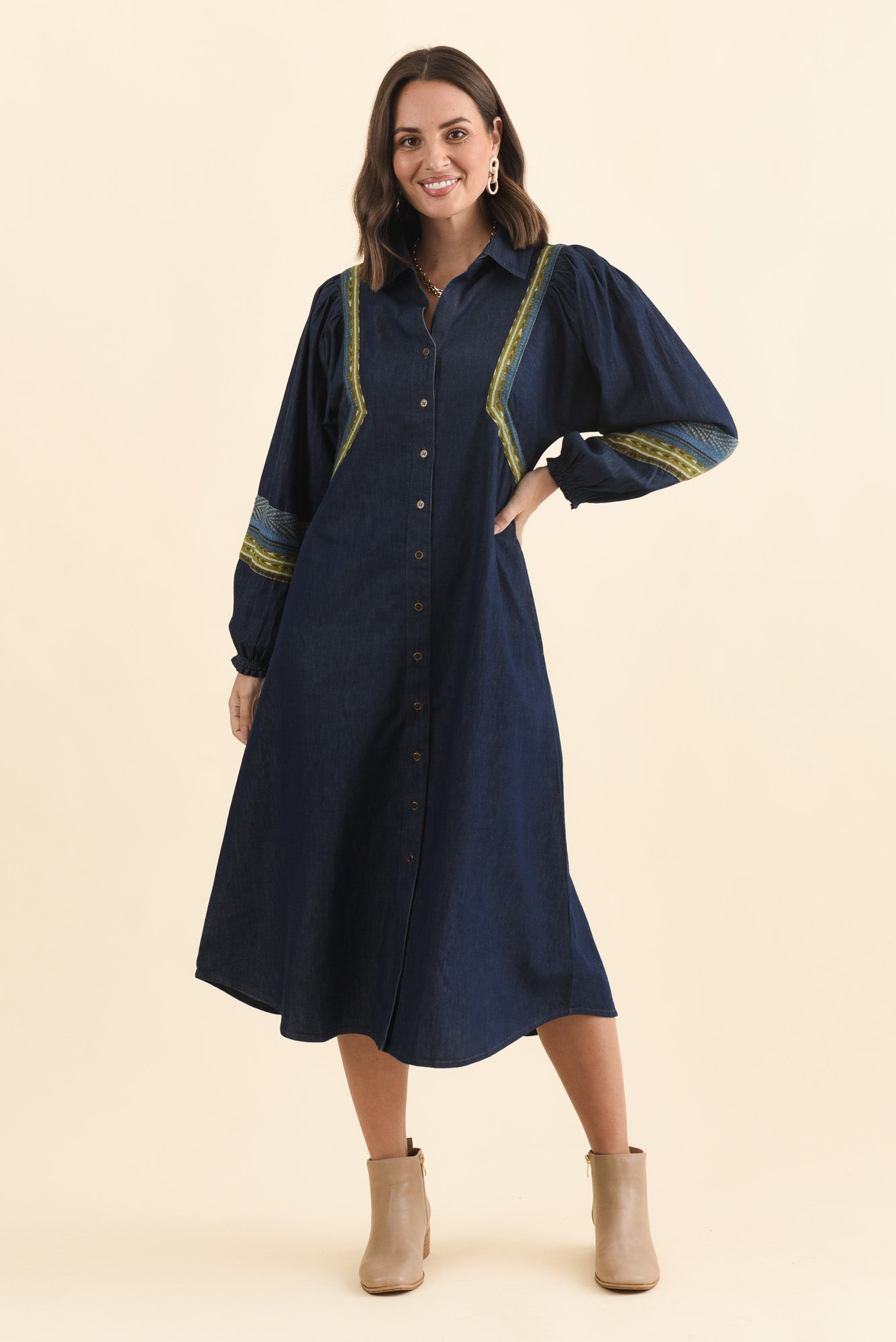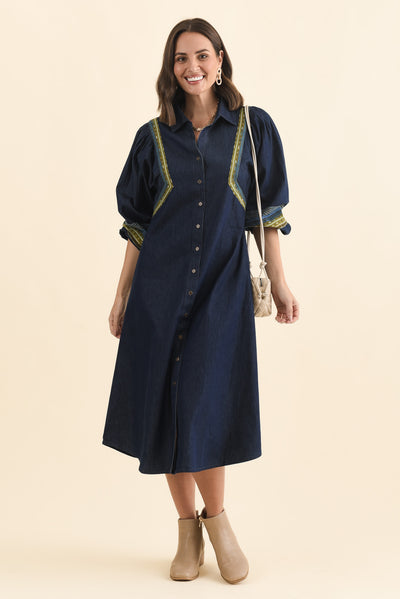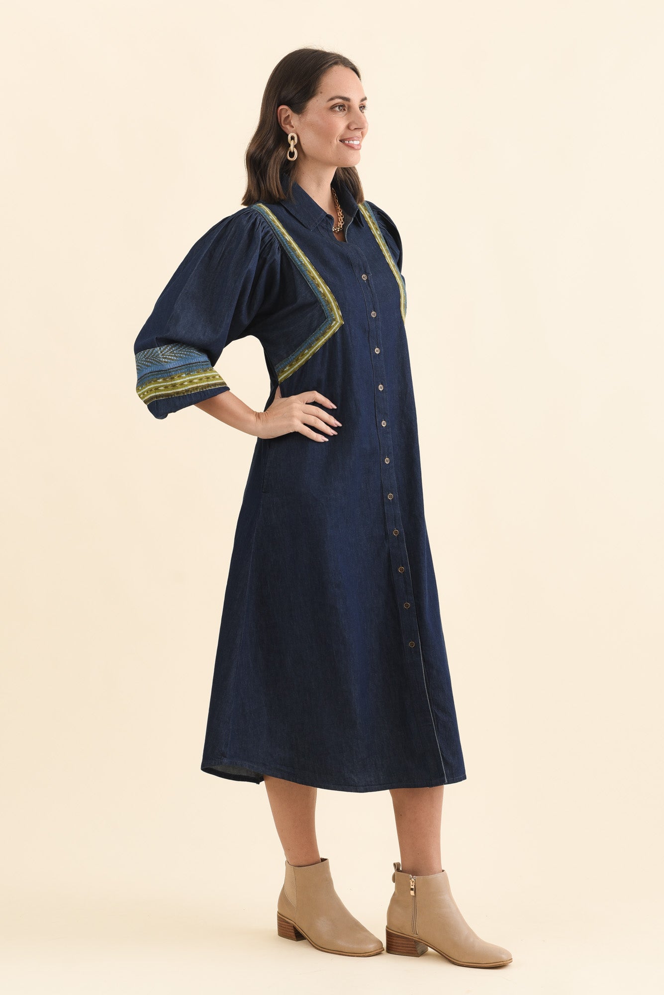 AEROME BLUE DENIM PUFF SLEEVE DRESS