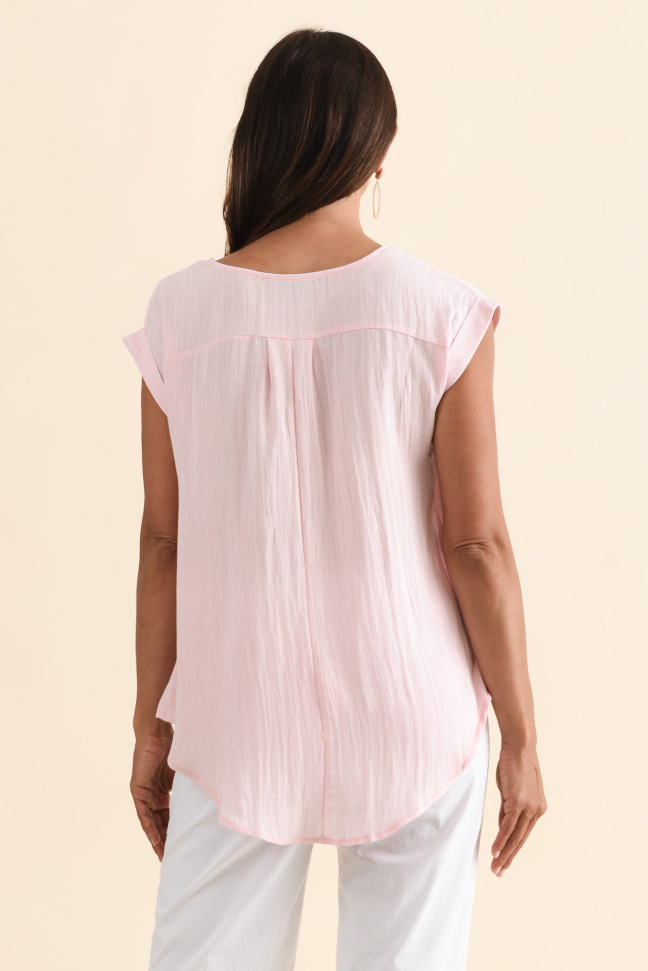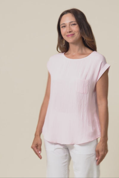 Aiden Blush Linen Blend Pocket Top