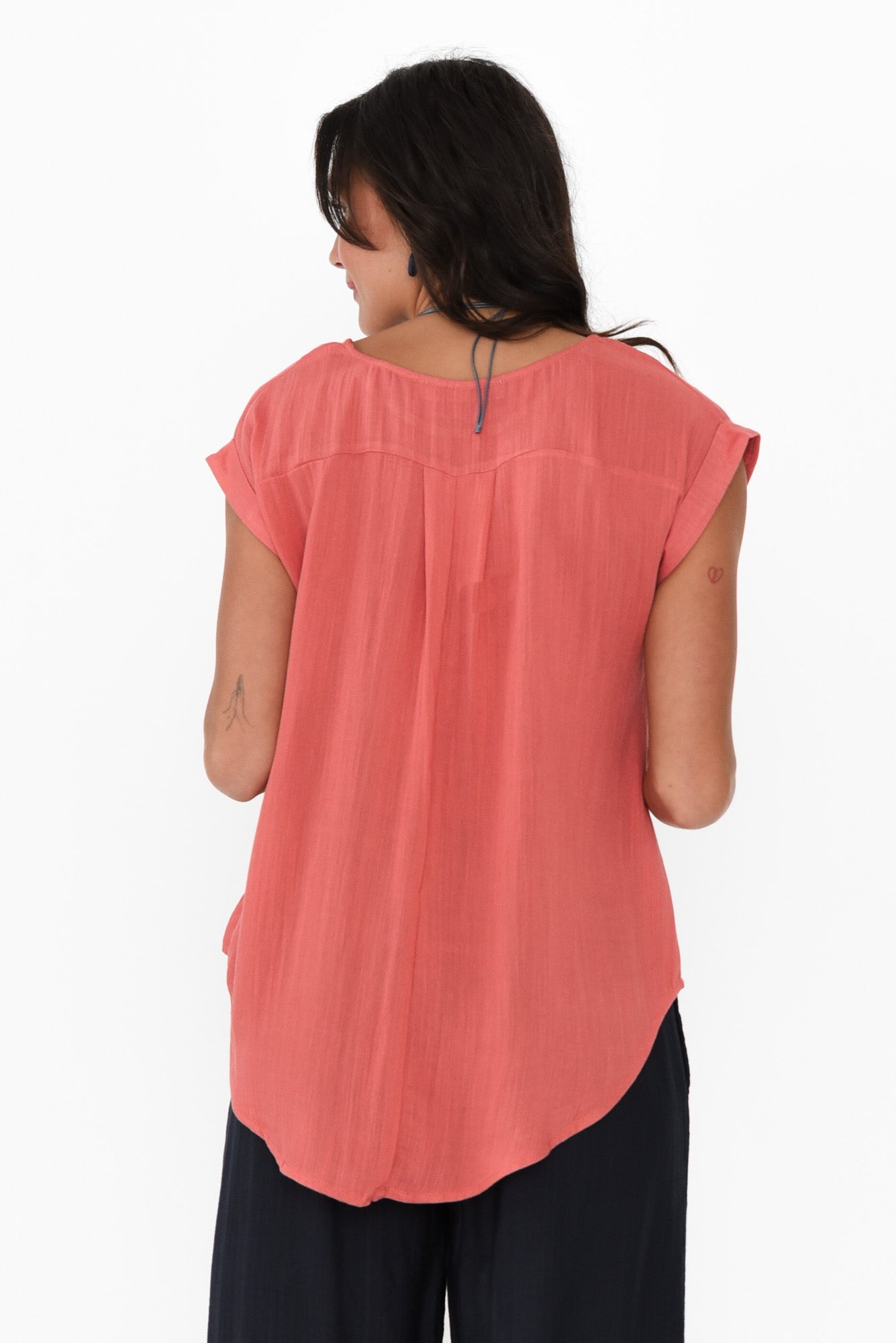 AIDEN CORAL LINEN BLEND POCKET TOP