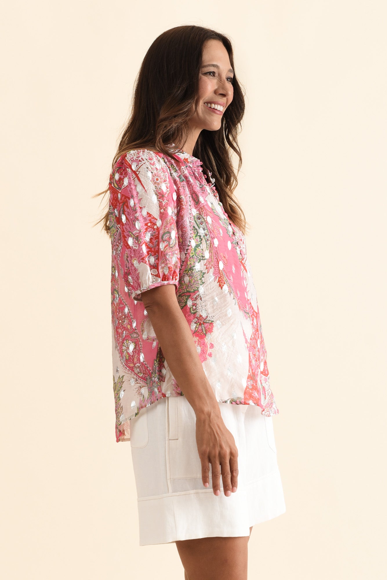 ALEXANDRA PINK PAISLEY BUTTON TOP