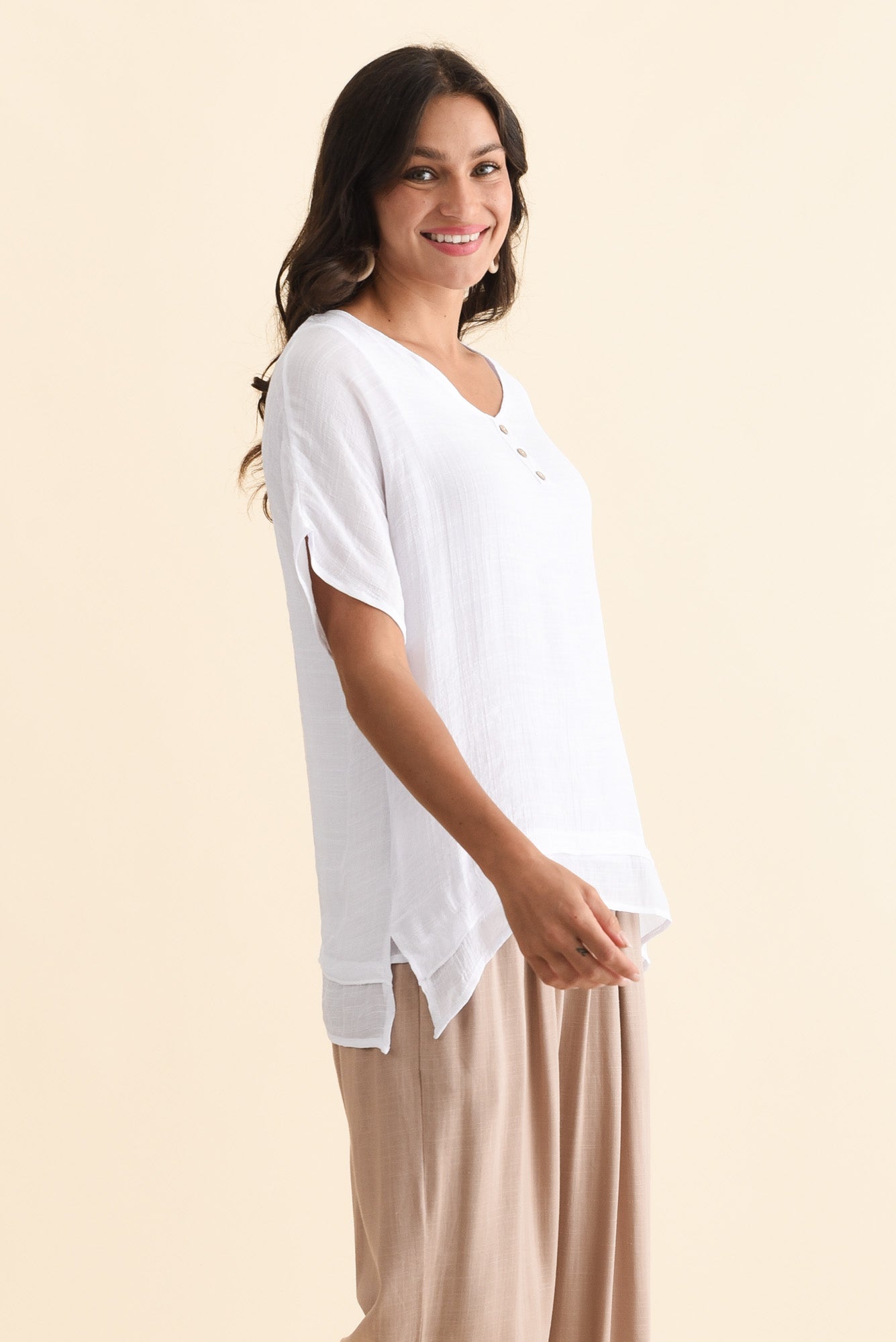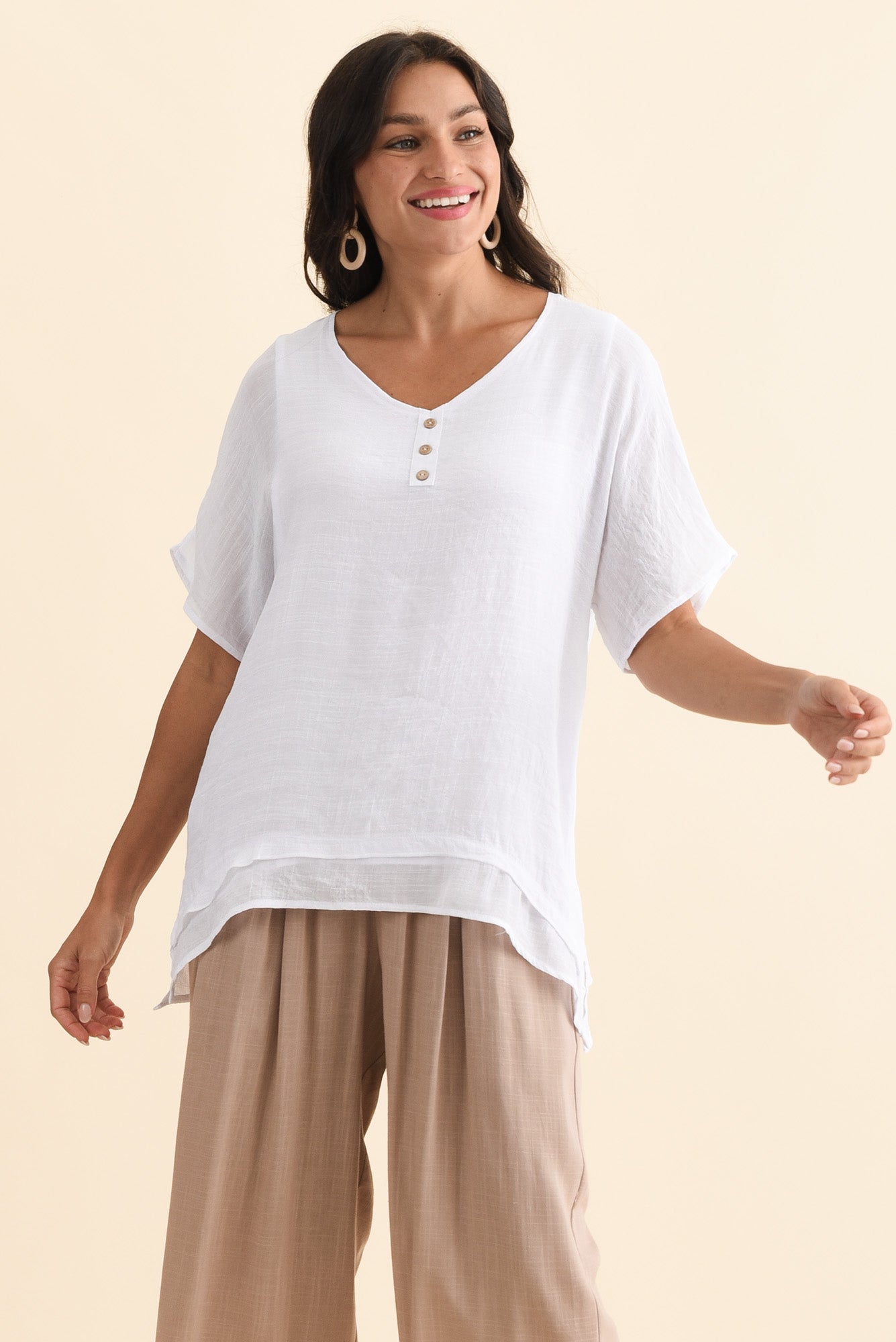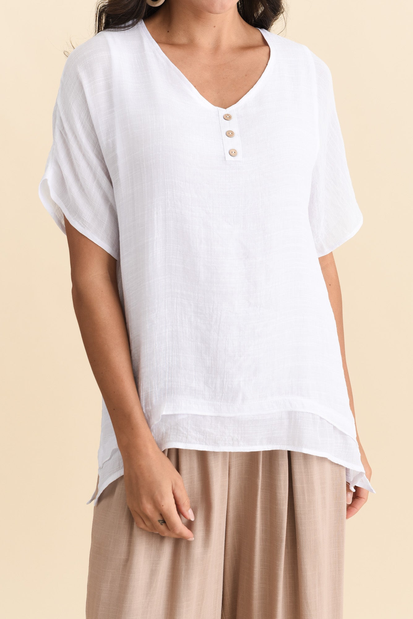 Alison White Layered Button Top