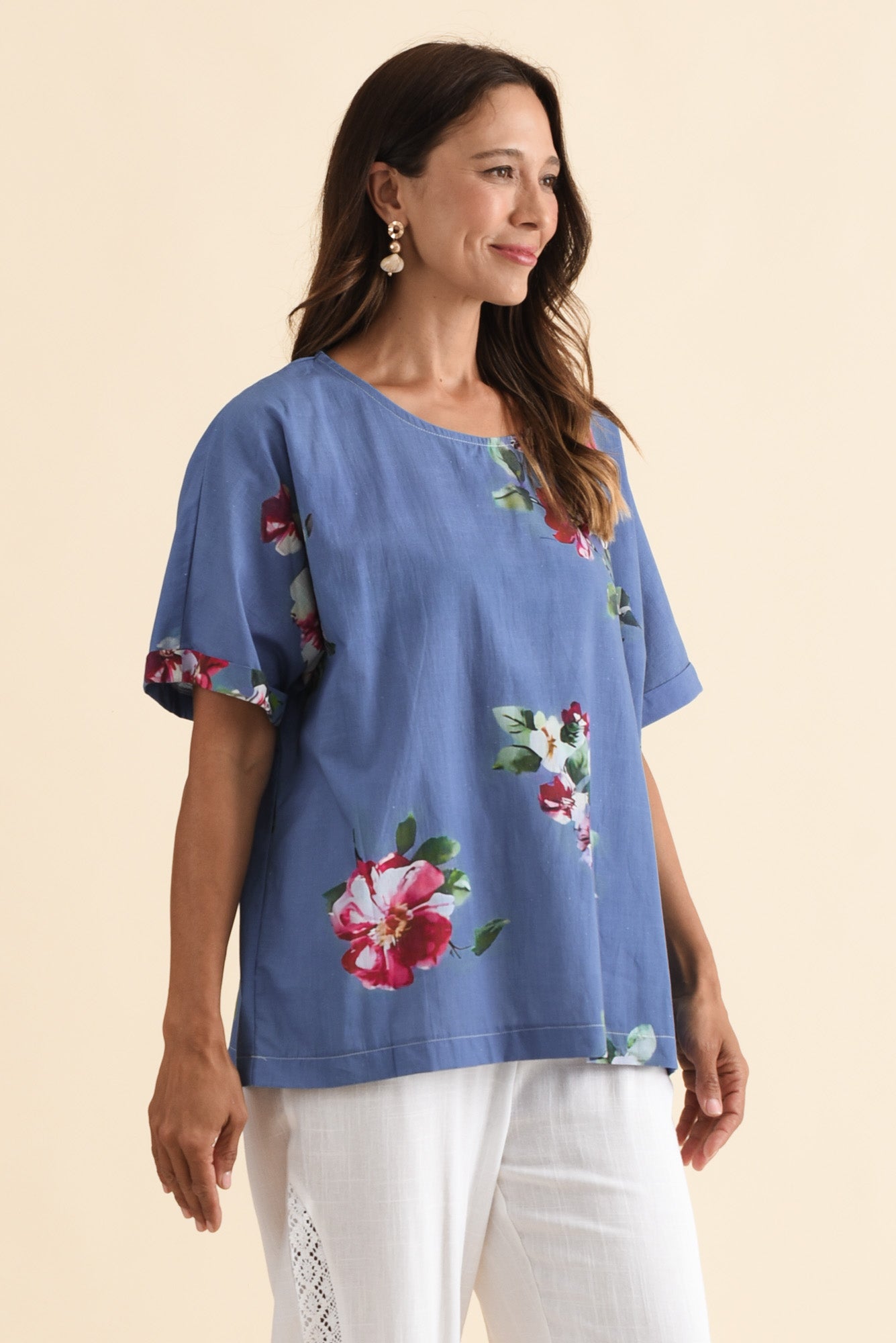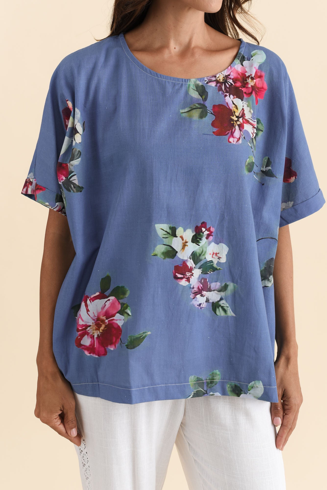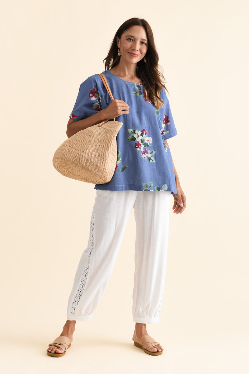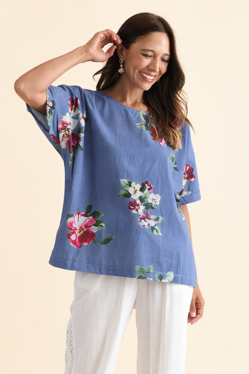 ALIYA BLUE FLOWER COTTON TOP