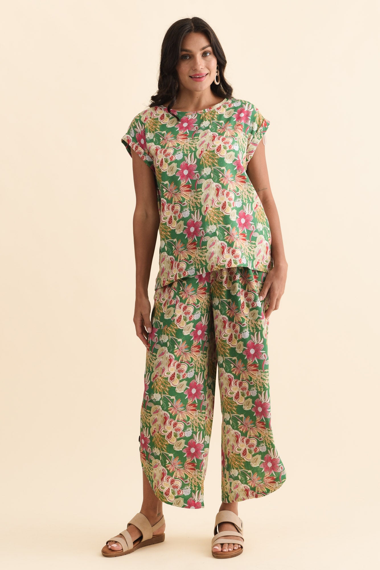 ALTA GREEN FLOWER LINEN COTTON TOP