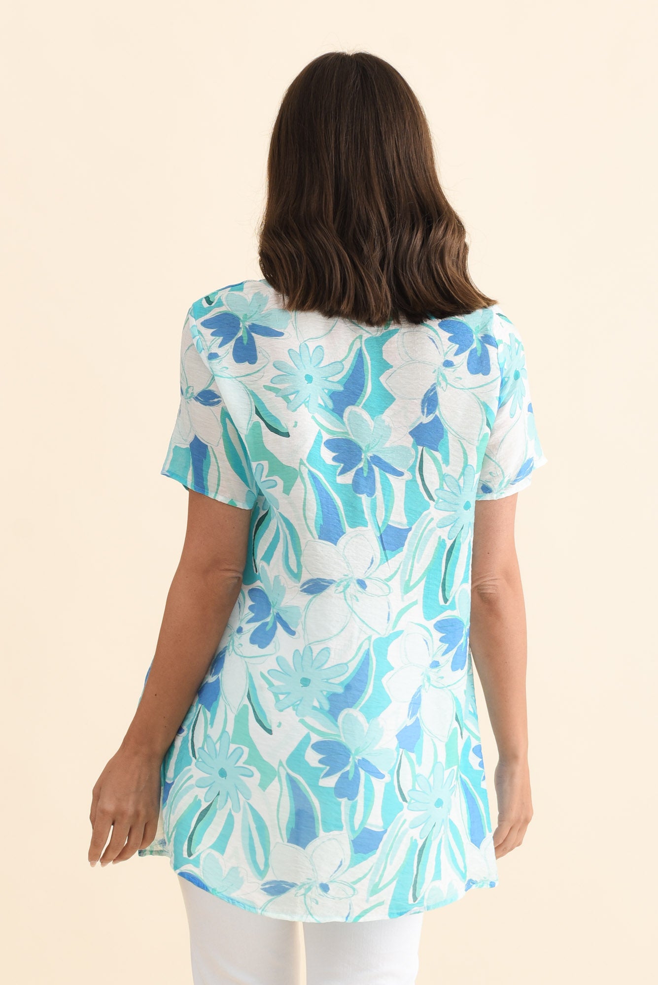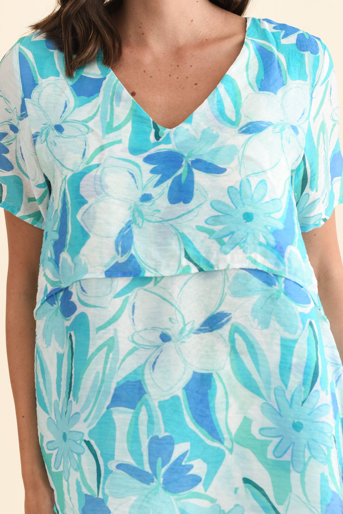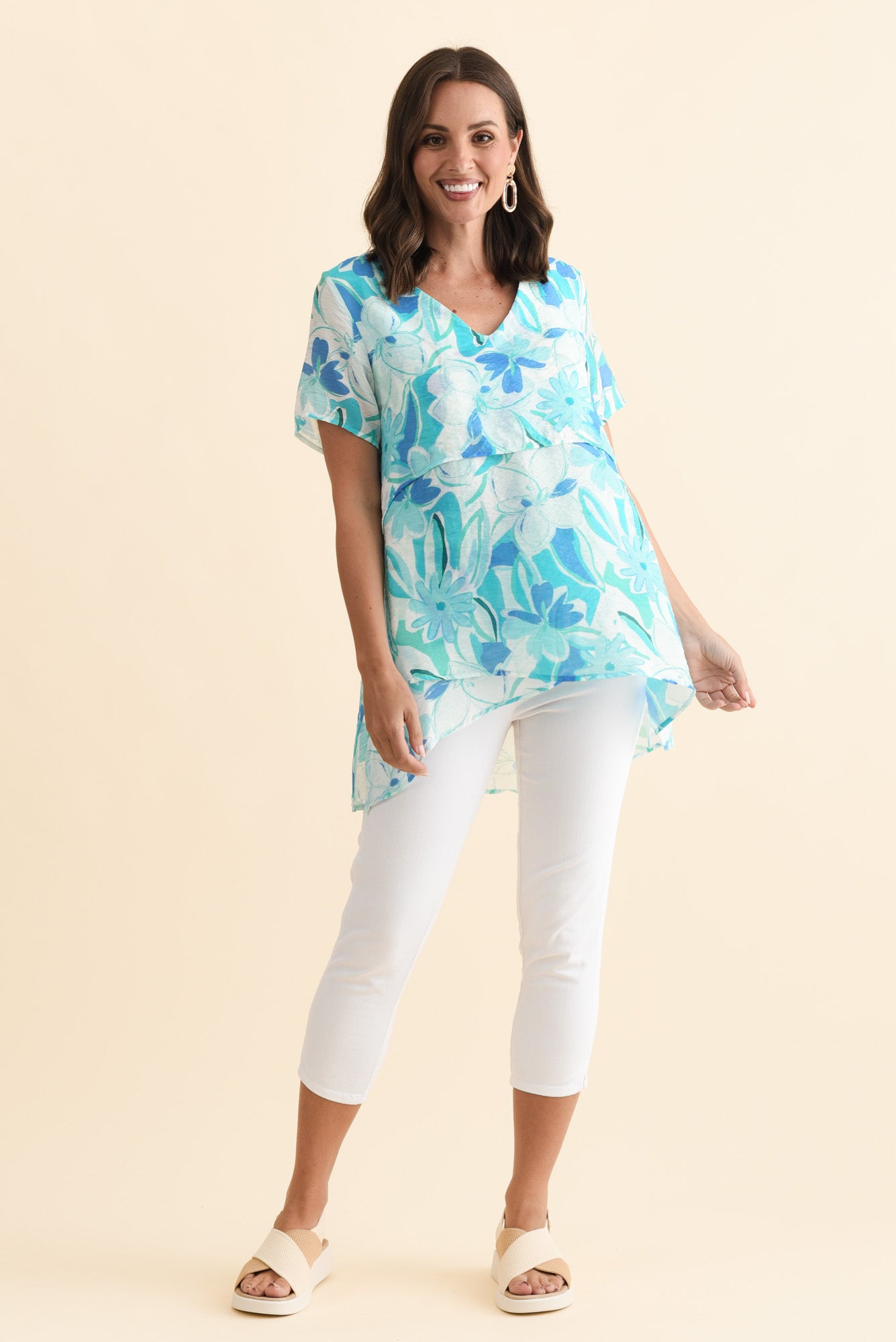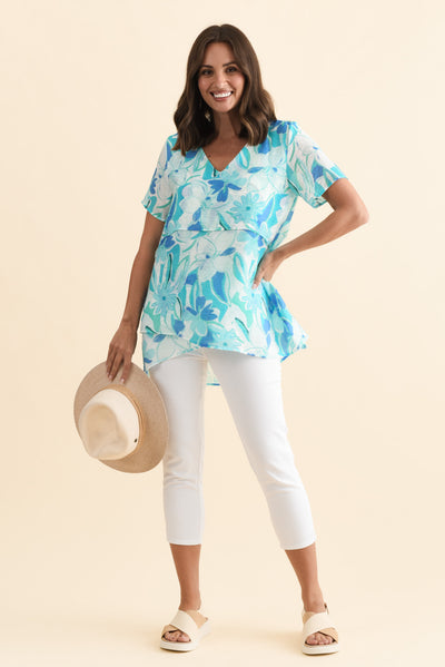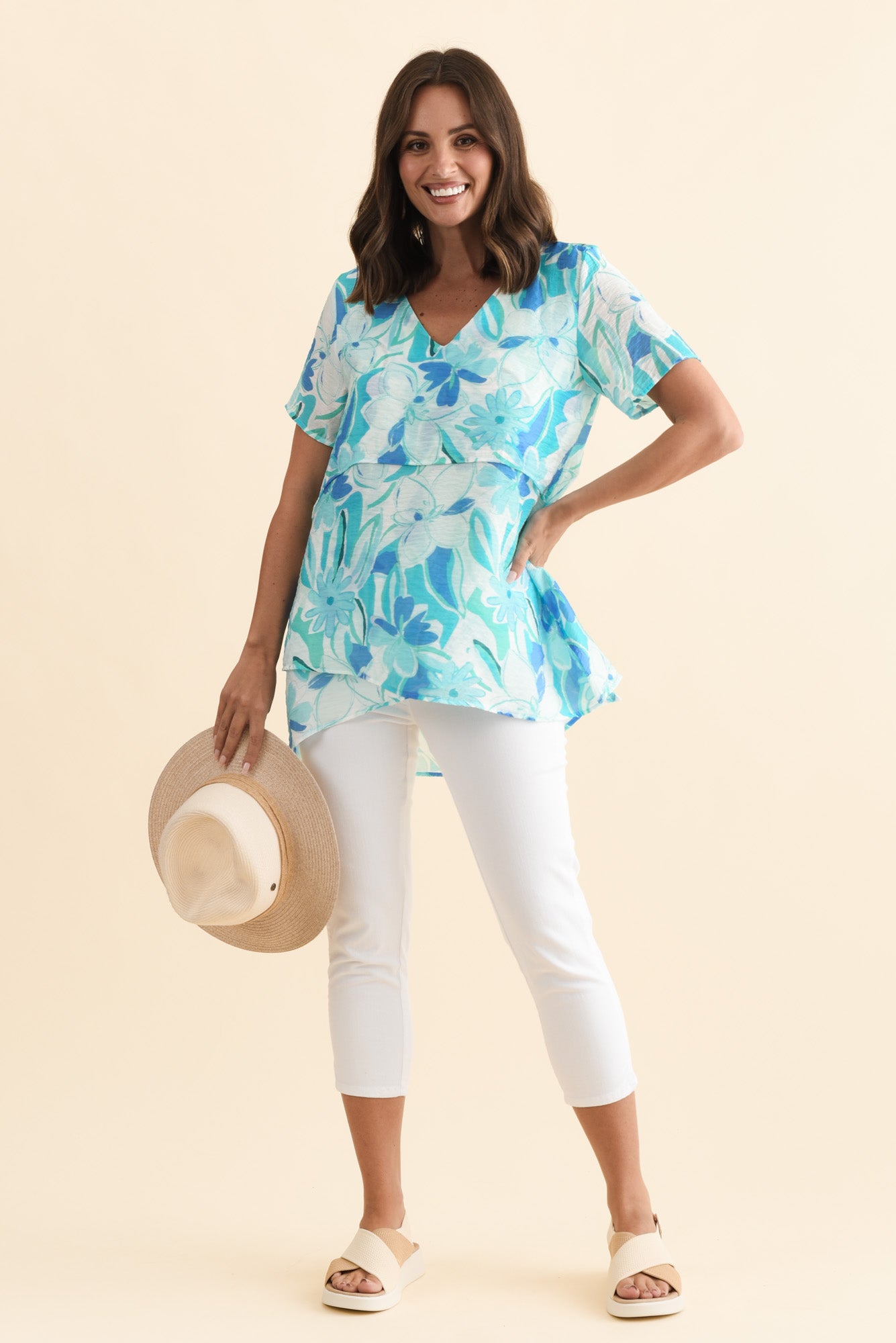 ALVINA AQUA BLOSSOM LAYERED TUNIC TOP