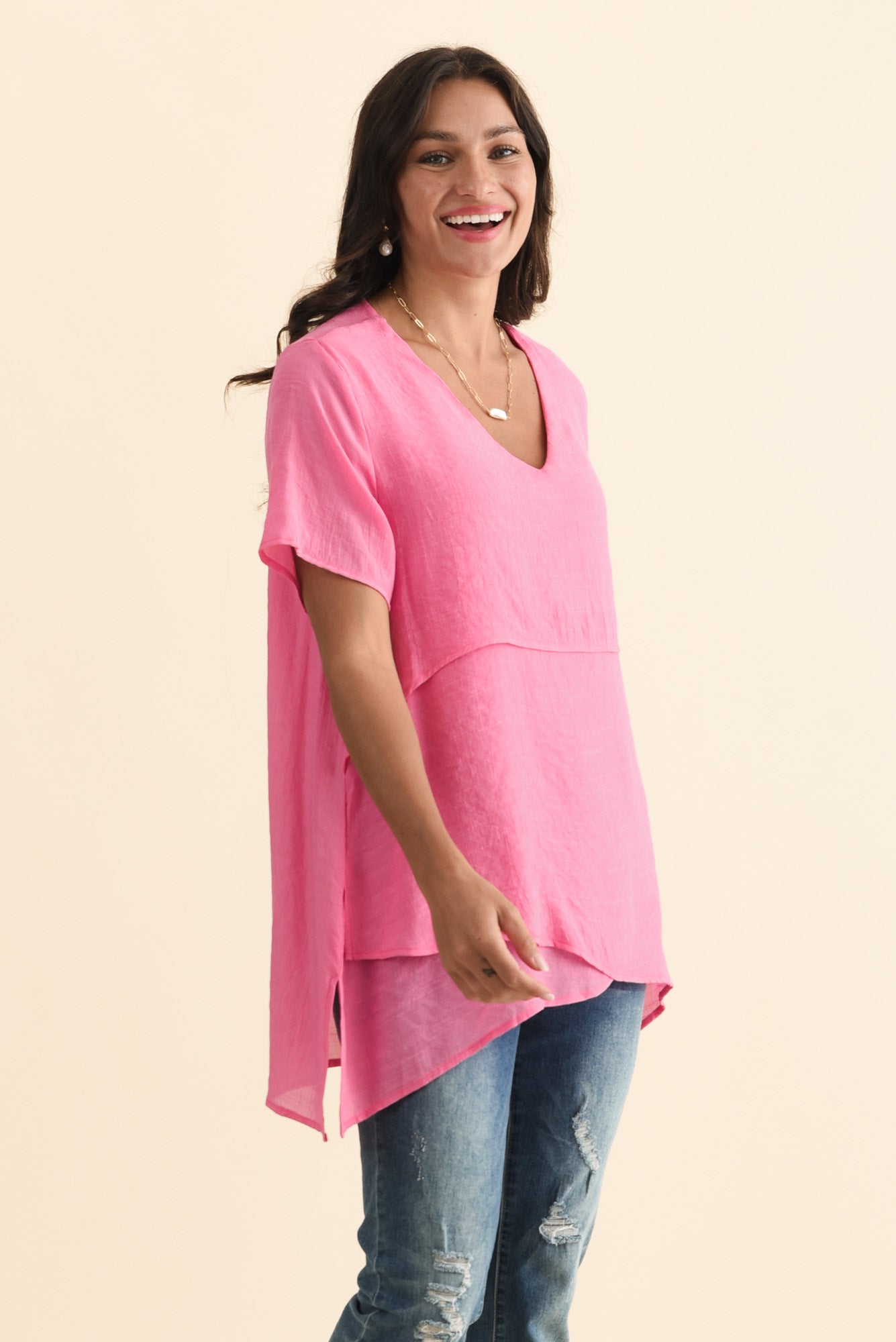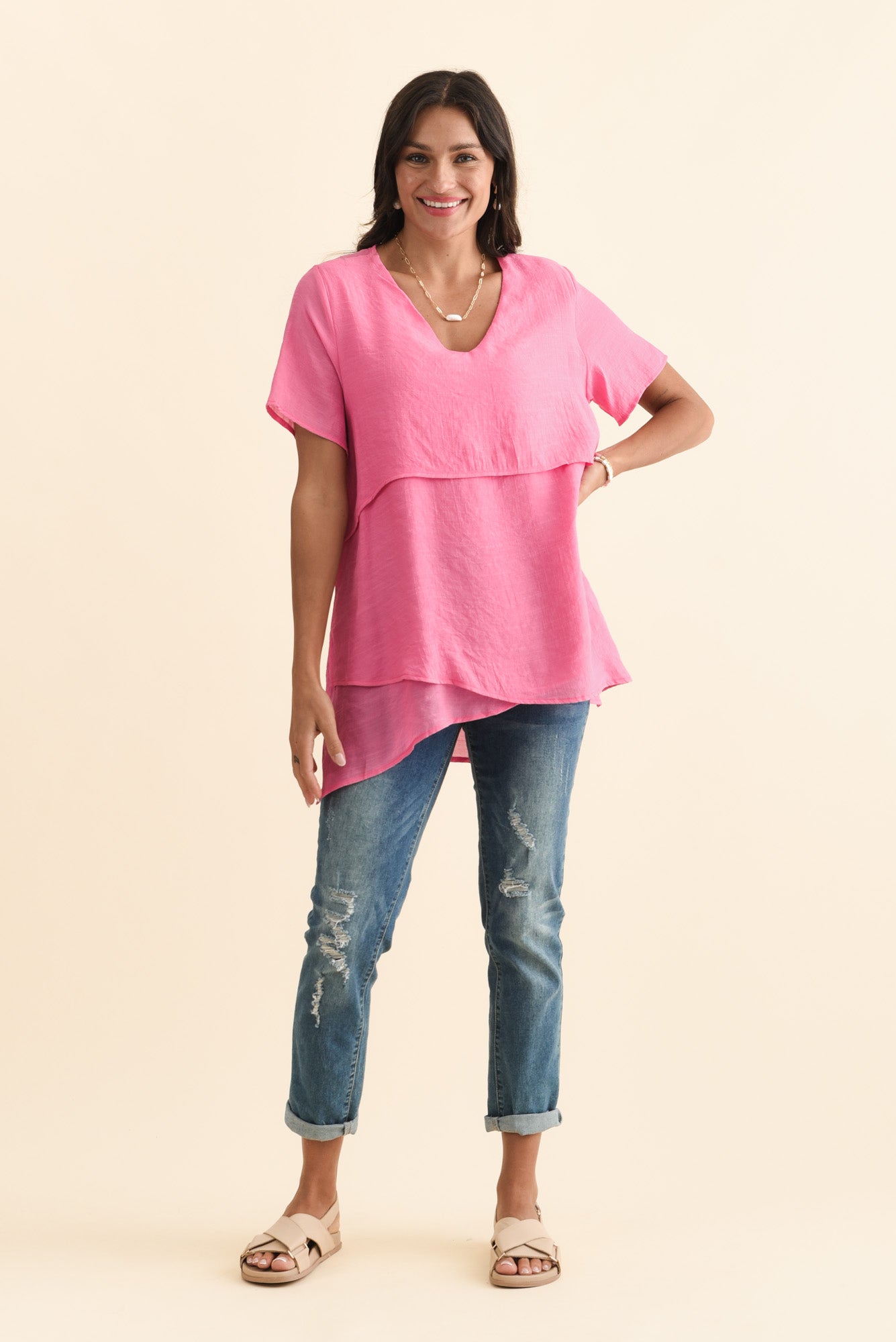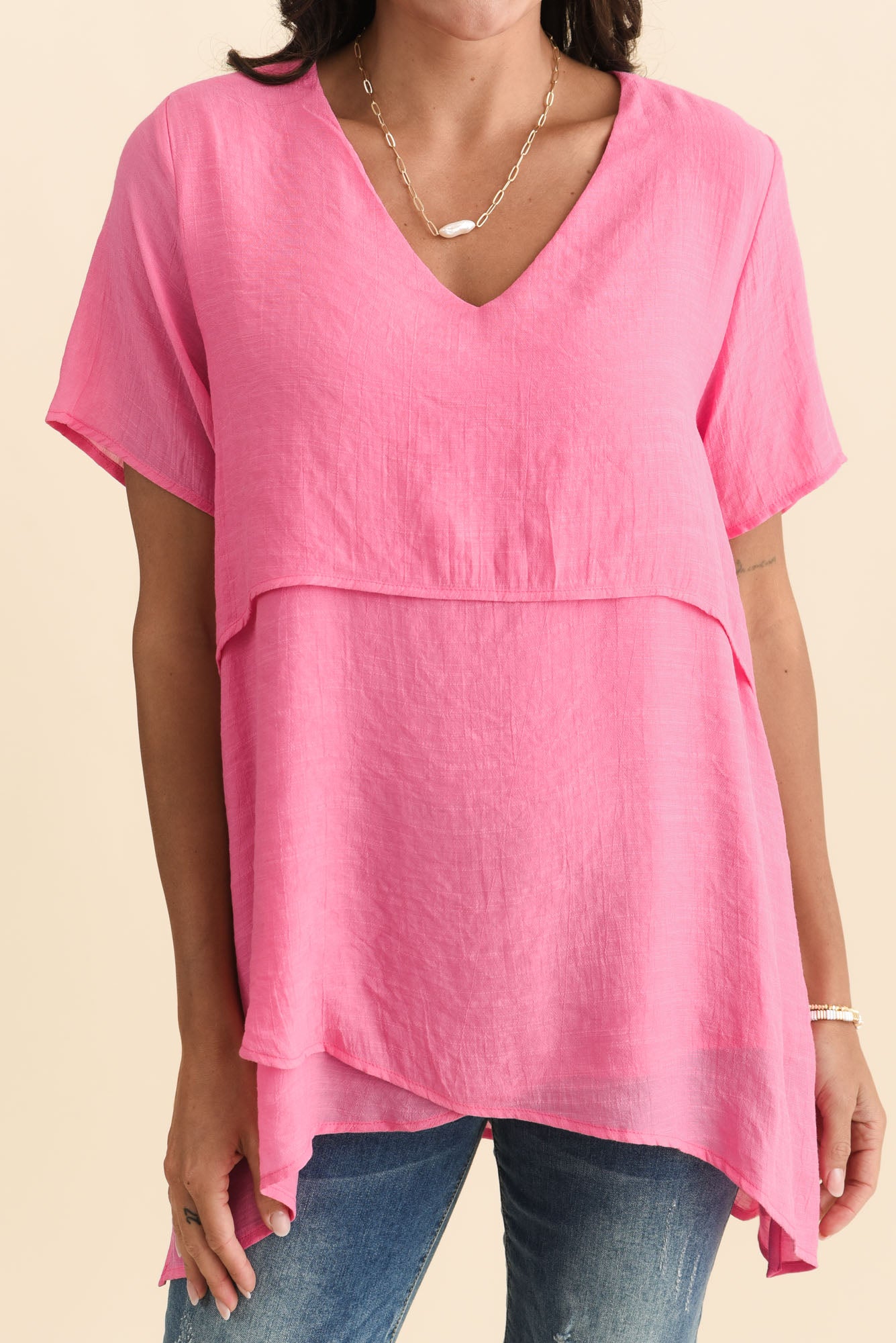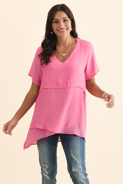 Alvina Candy Pink Layered Tunic Top