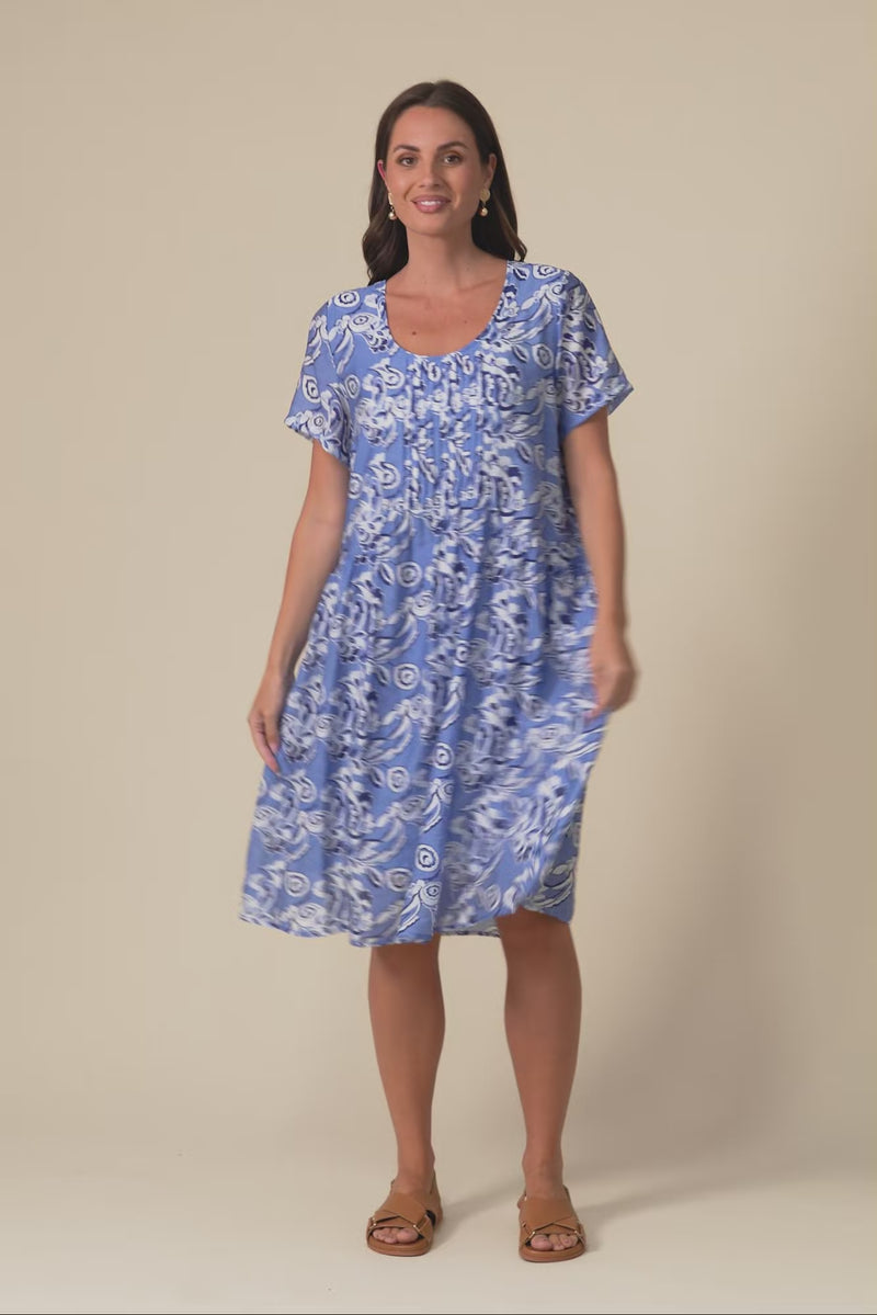 Alysse Blue Floral Pocket Dress