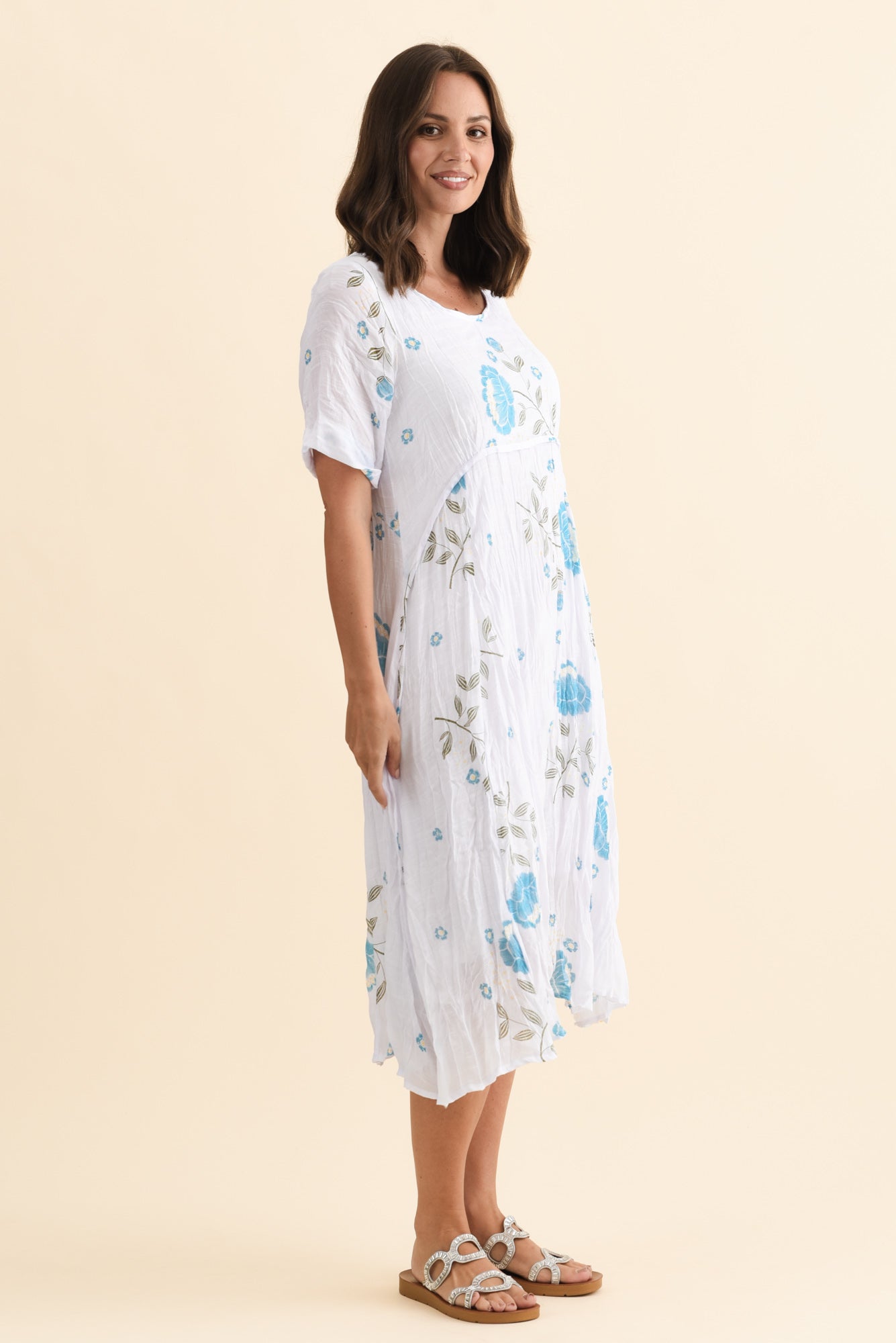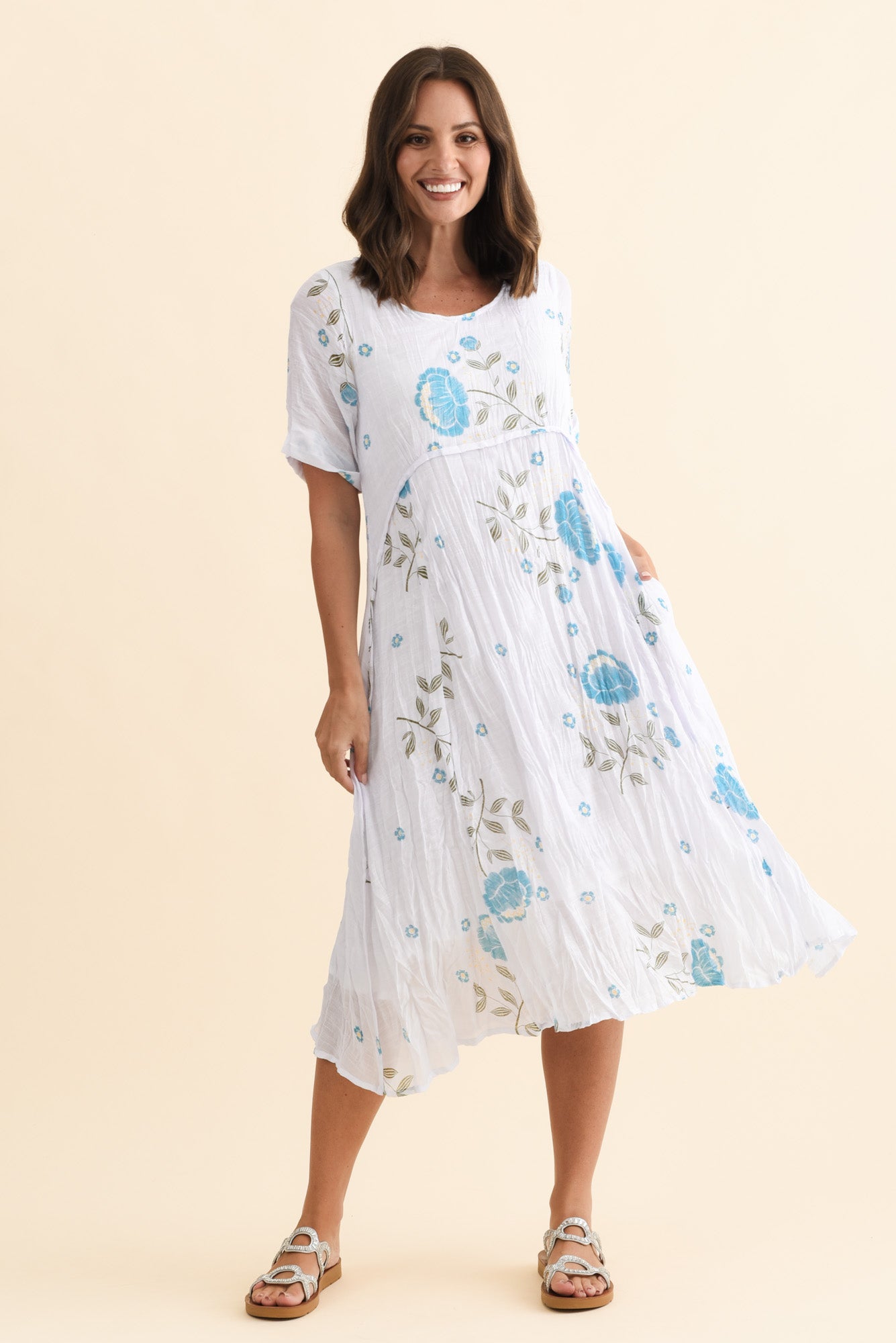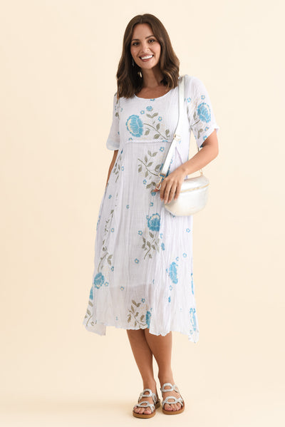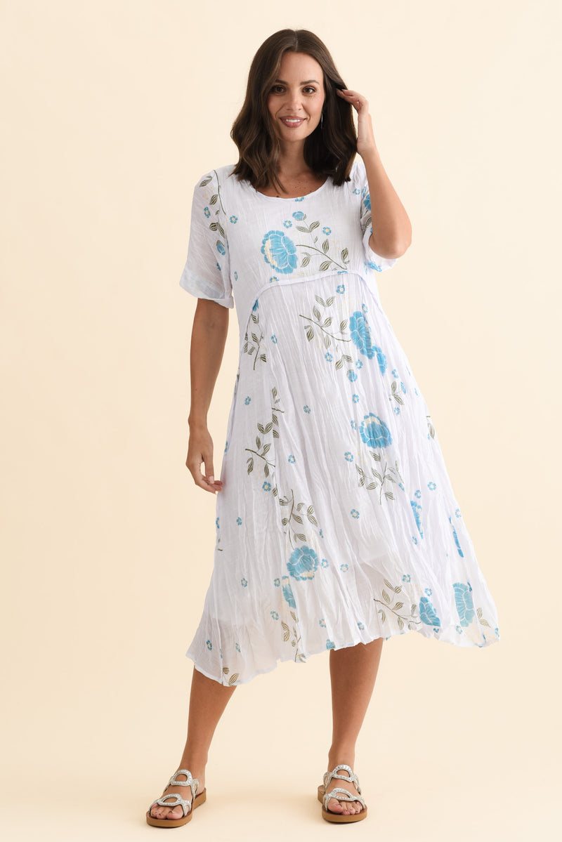 AMBERLEY BLUE FLORAL COTTON BLEND DRESS