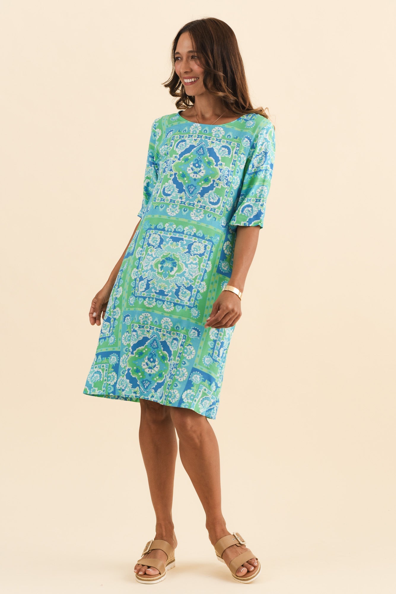 ANDERS BLUE ABSTRACT HALF SLEEVE DRESS