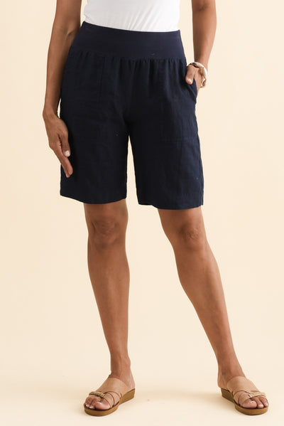 Aster Navy Linen Shorts
