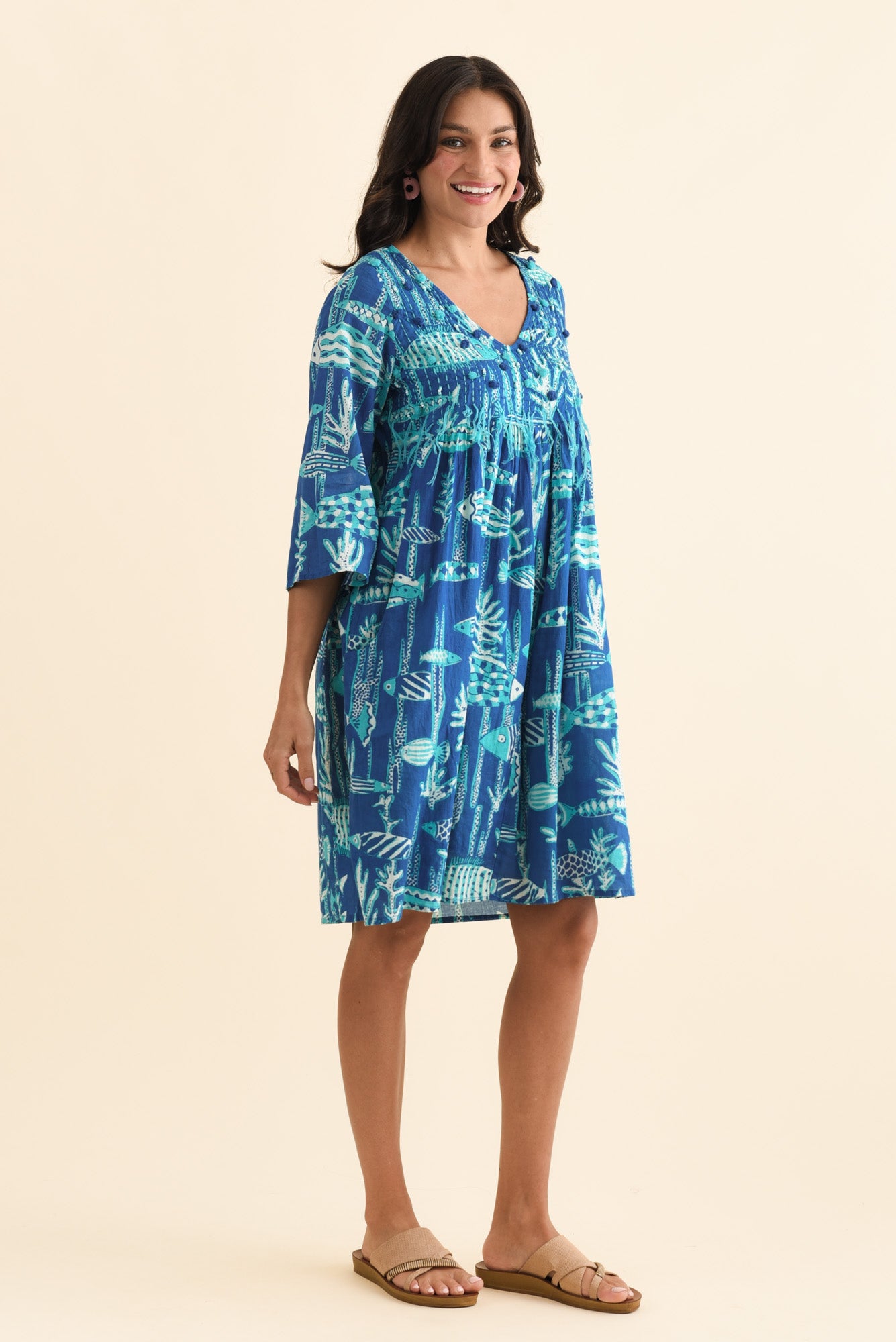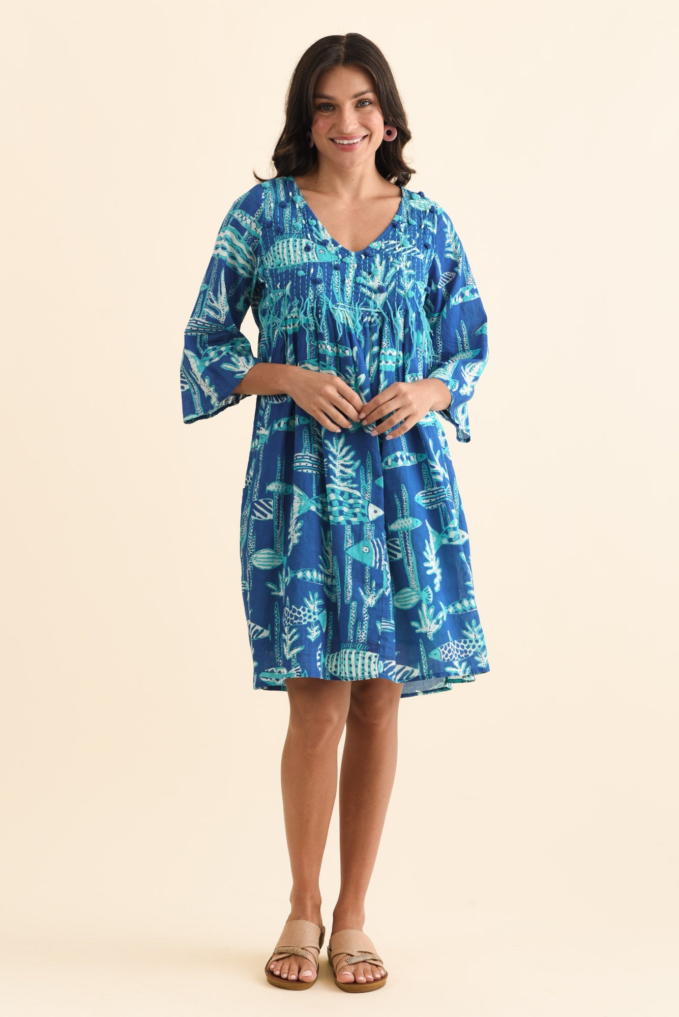AVA COBALT SEA COTTON POCKET DRESS