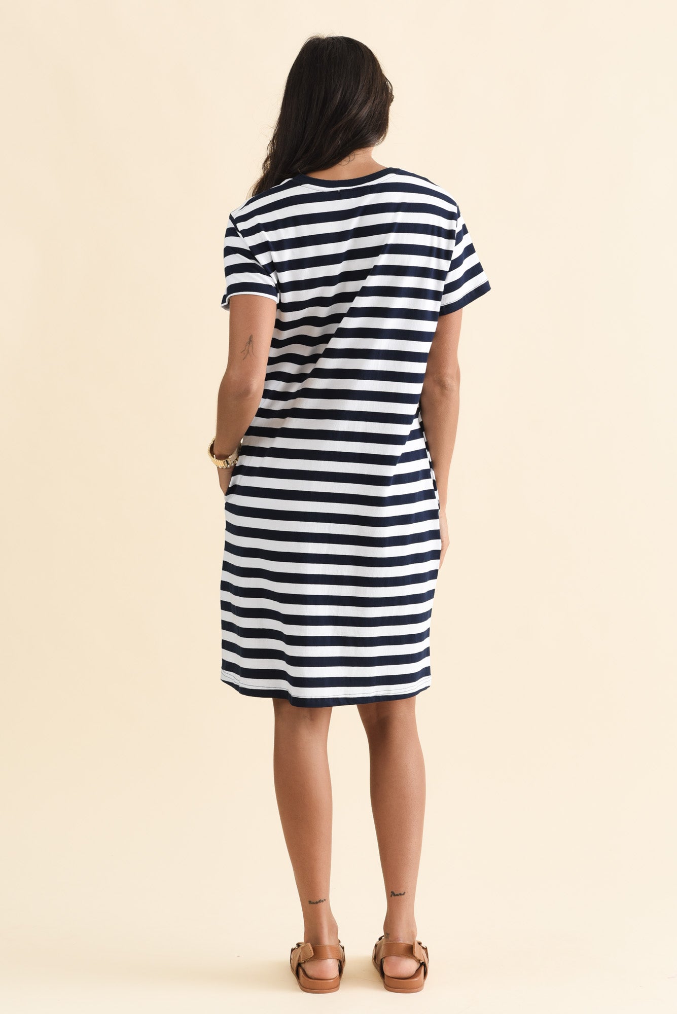 AYA NAVY STRIPE BOW COTTON DRESS