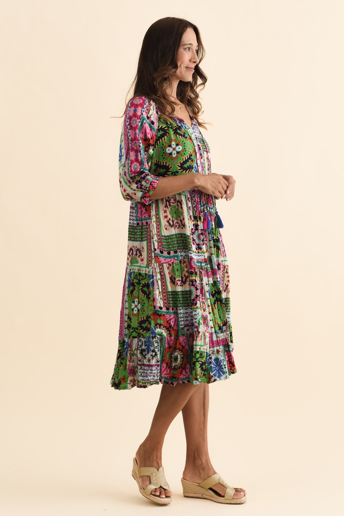 BELMIRA GREEN ABSTRACT POCKET DRESS