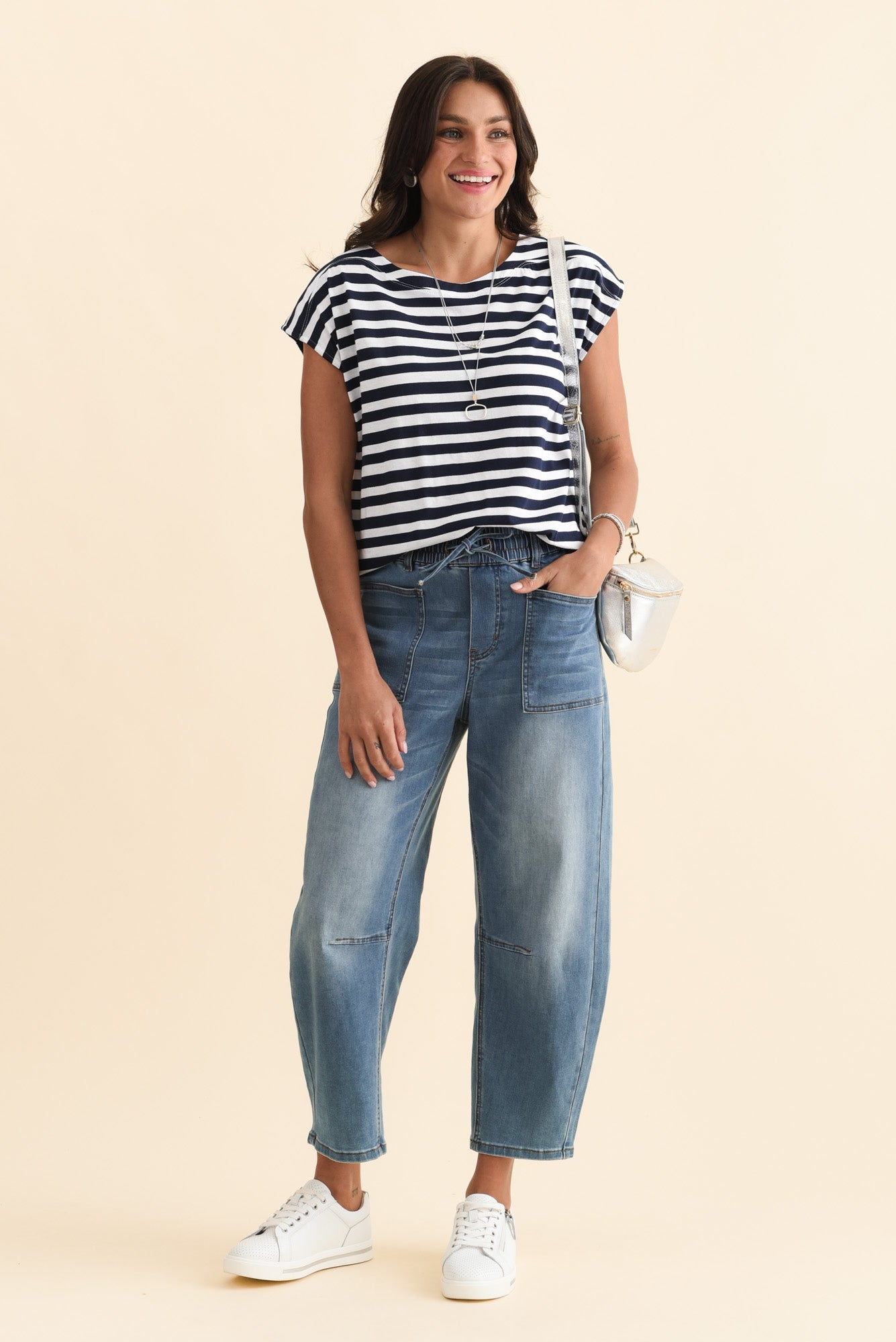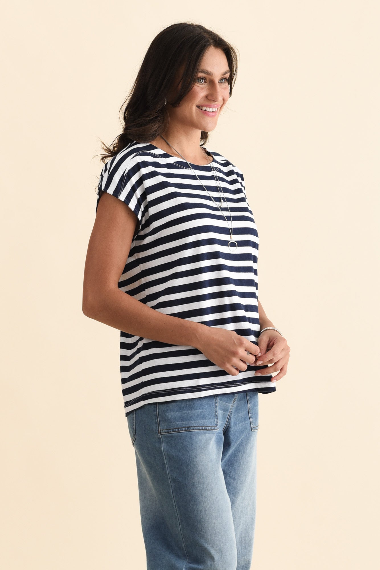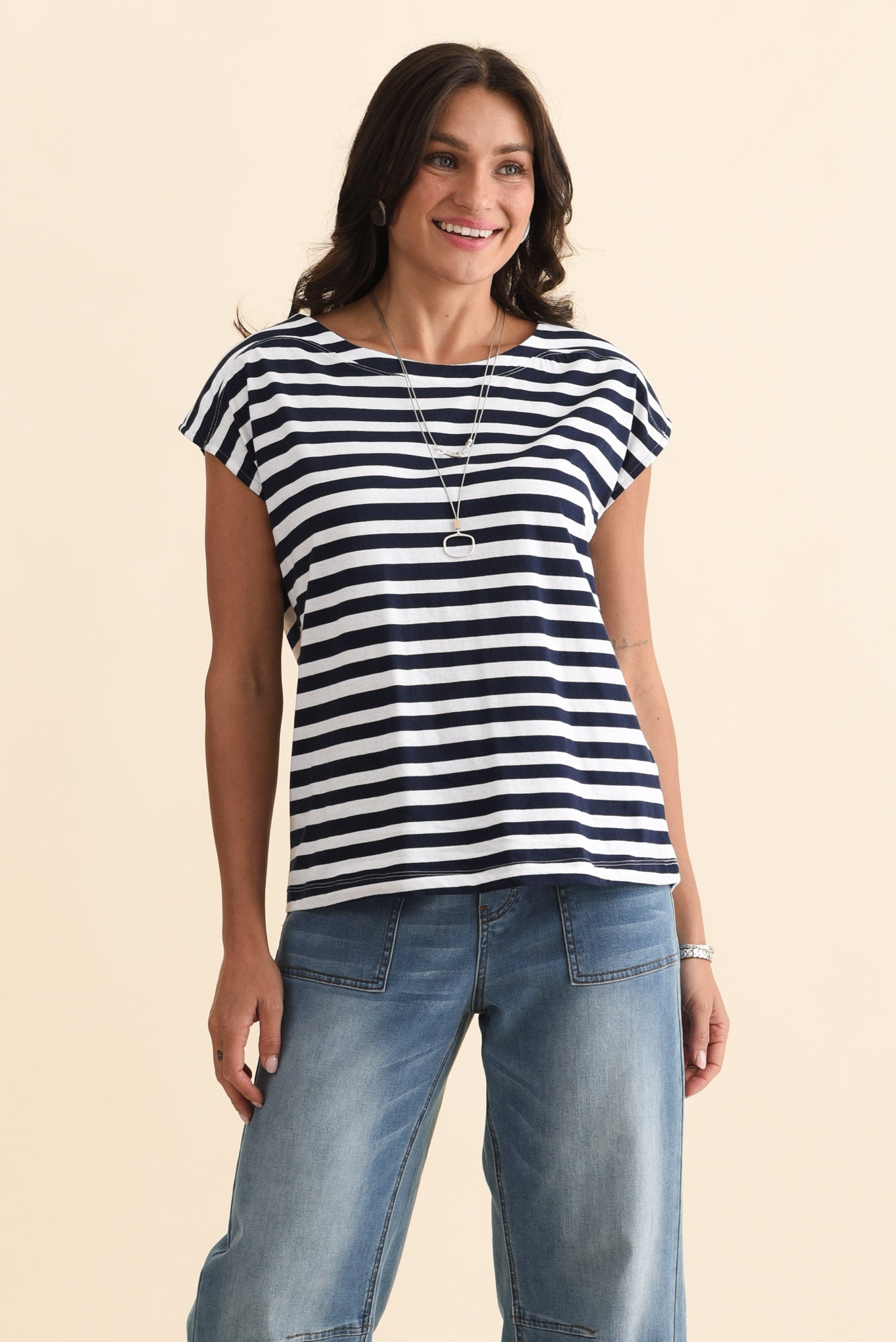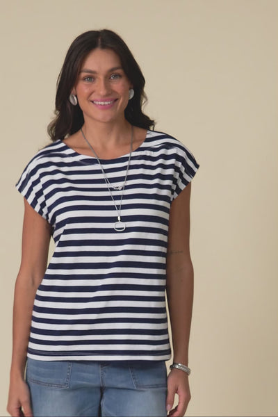 Beth Navy Stripe Cotton Boatneck Tee