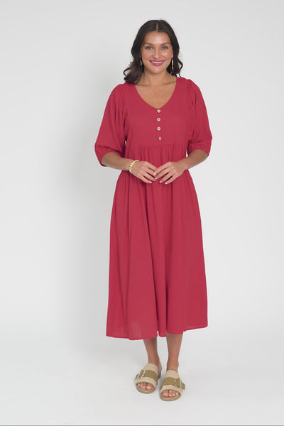 Bethany Red Pocket Midi Dress