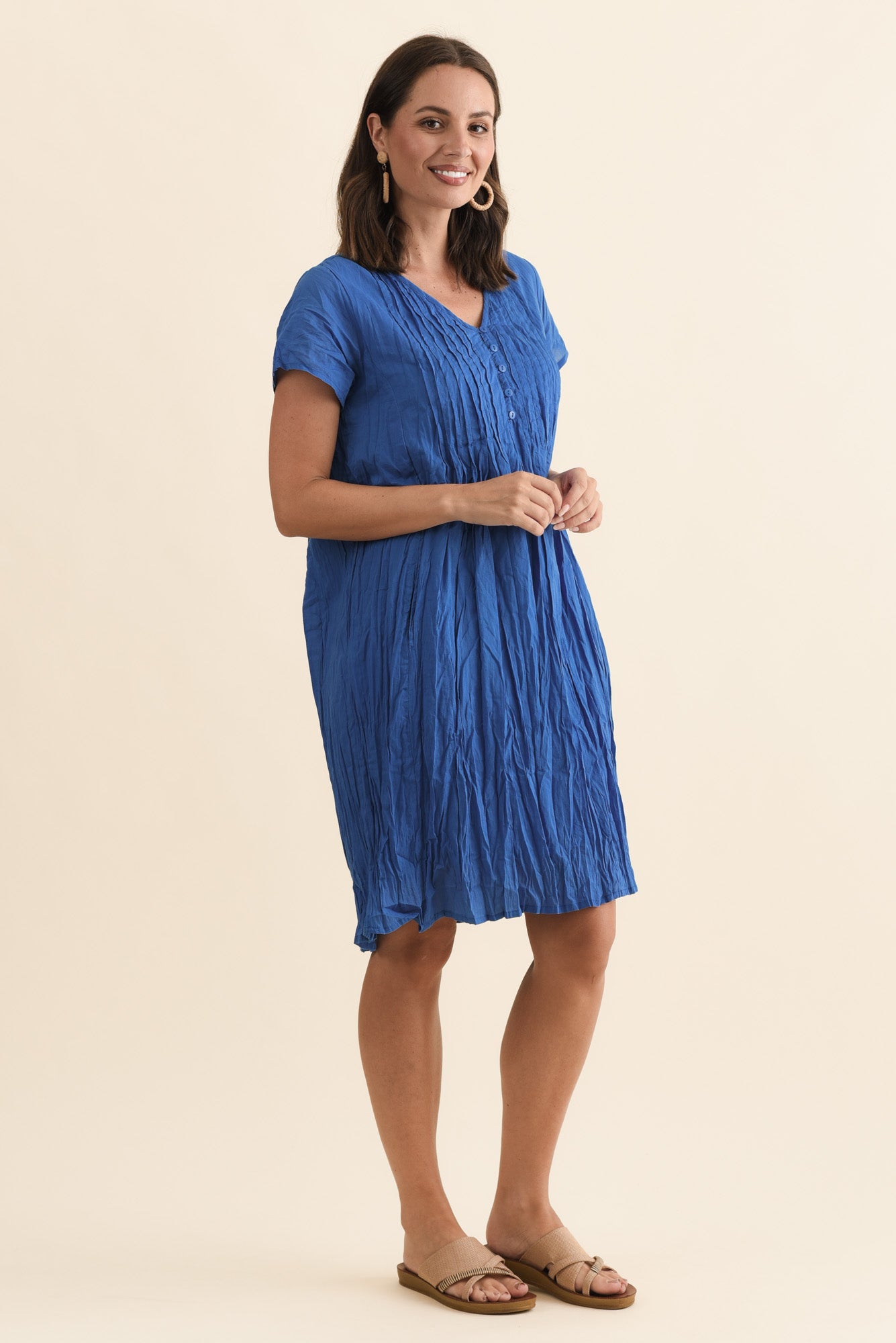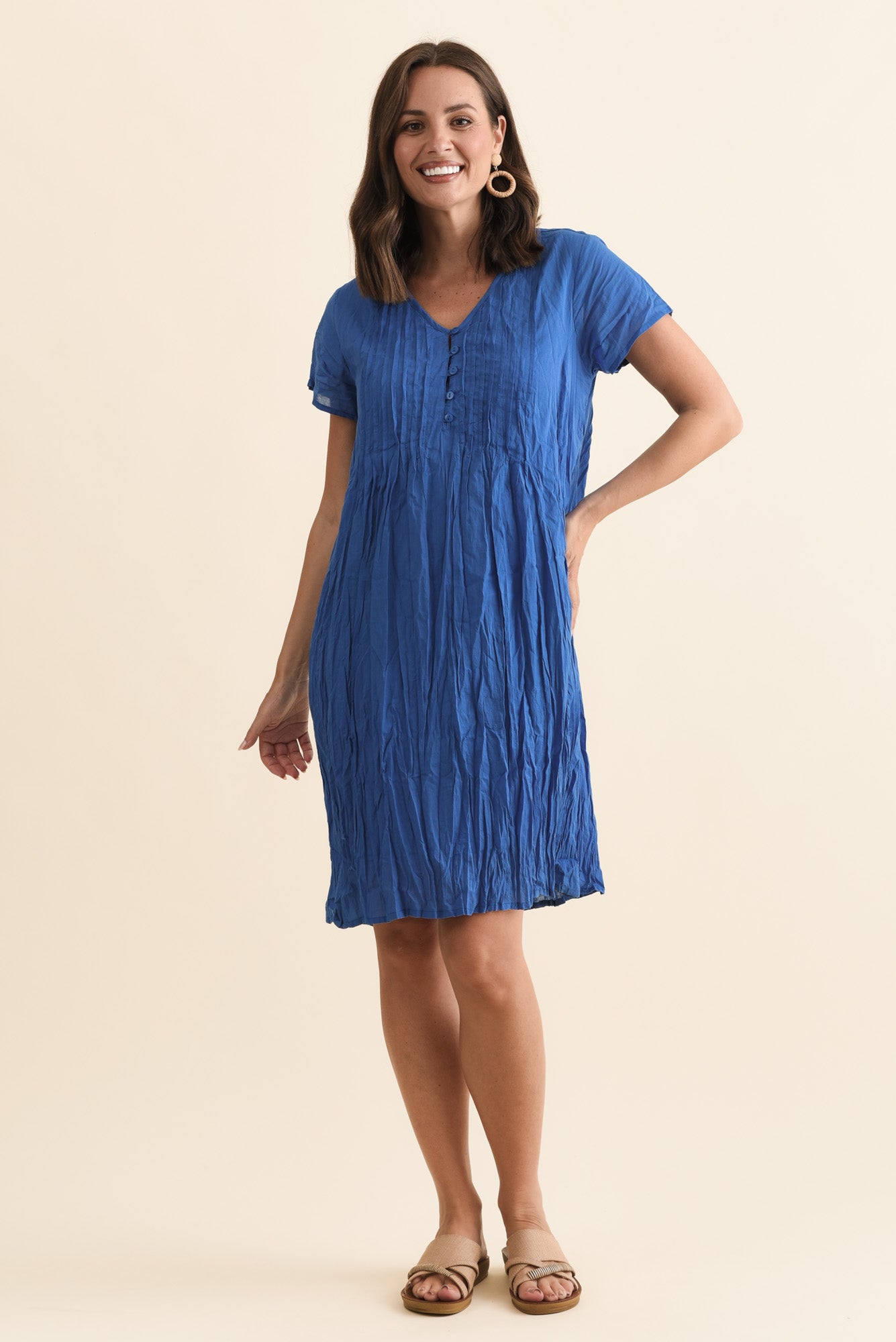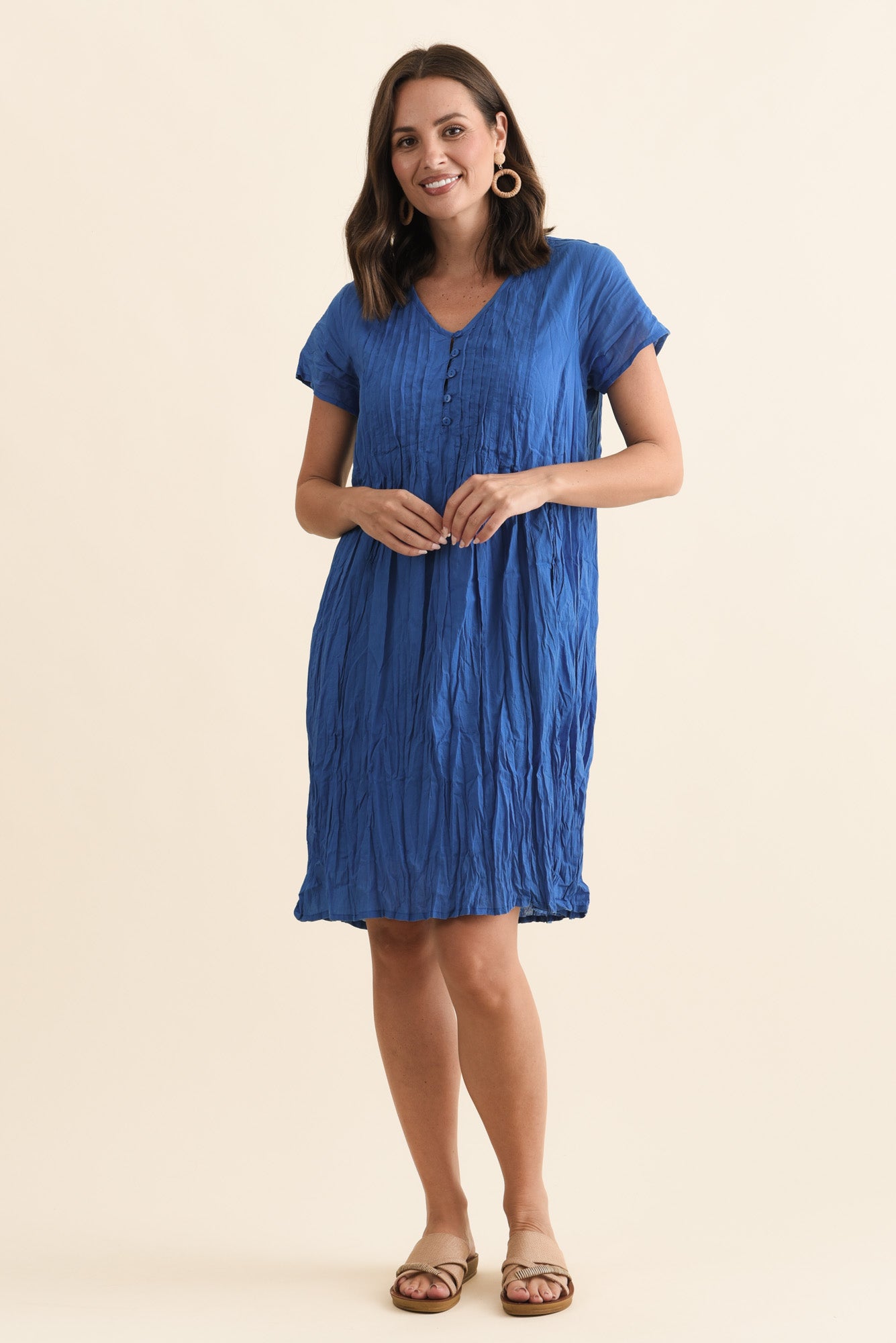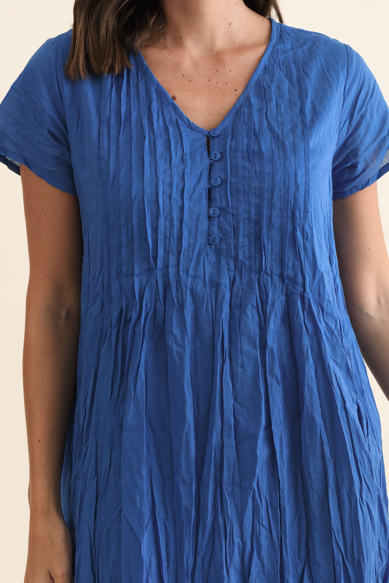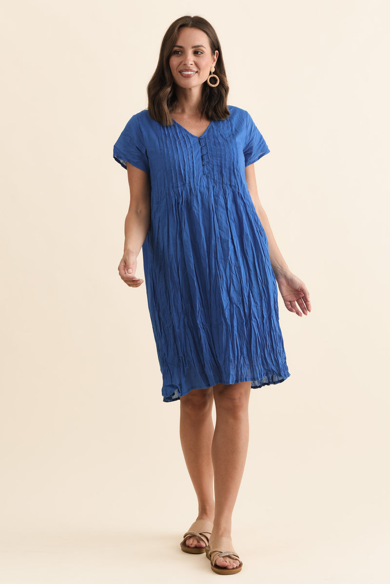 Sabina Blue Crinkle Cotton Dress