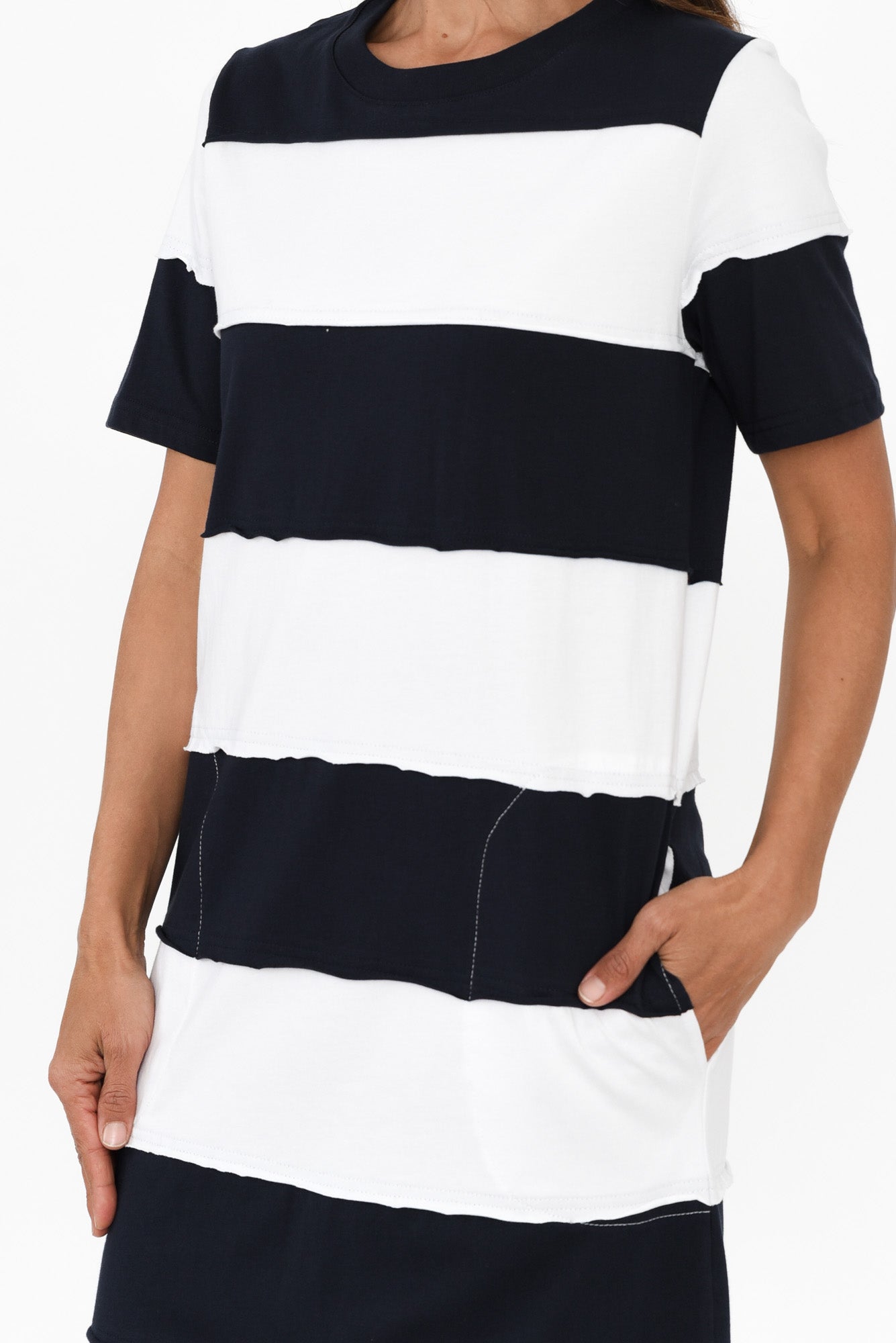 BOLD NAVY STRIPE COTTON TEE DRESS