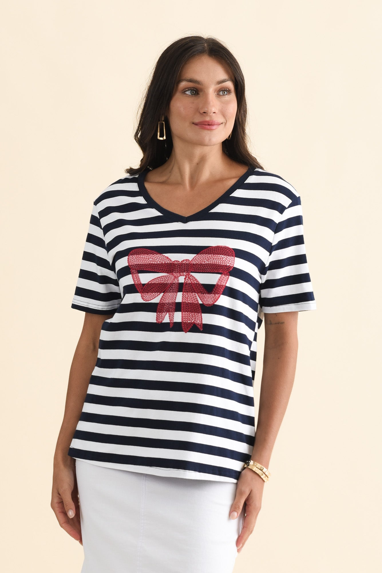 BOWIE NAVY STRIPE BOW COTTON TEE