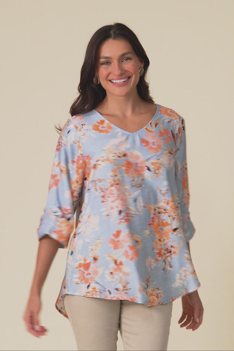 Breanne Blue Garden Button Top