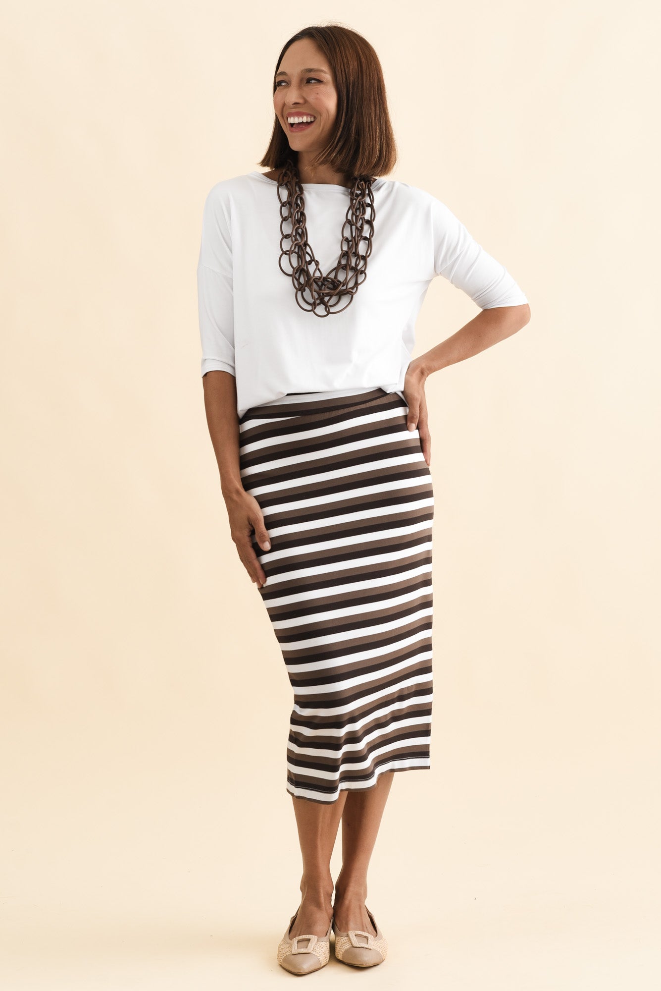 Brown Stripe Bamboo Maxi Tube Skirt