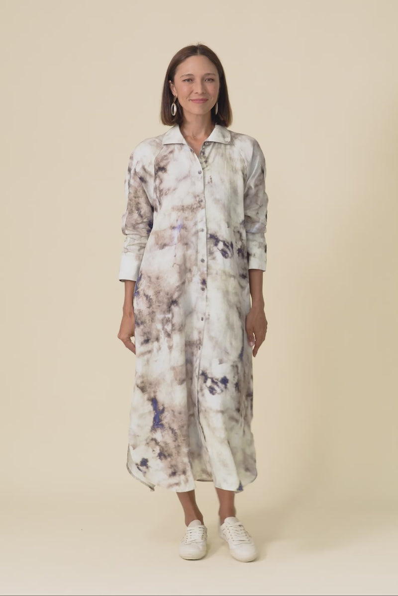 BRYLEE TAUPE ABSTRACT LINEN SHIRT DRESS