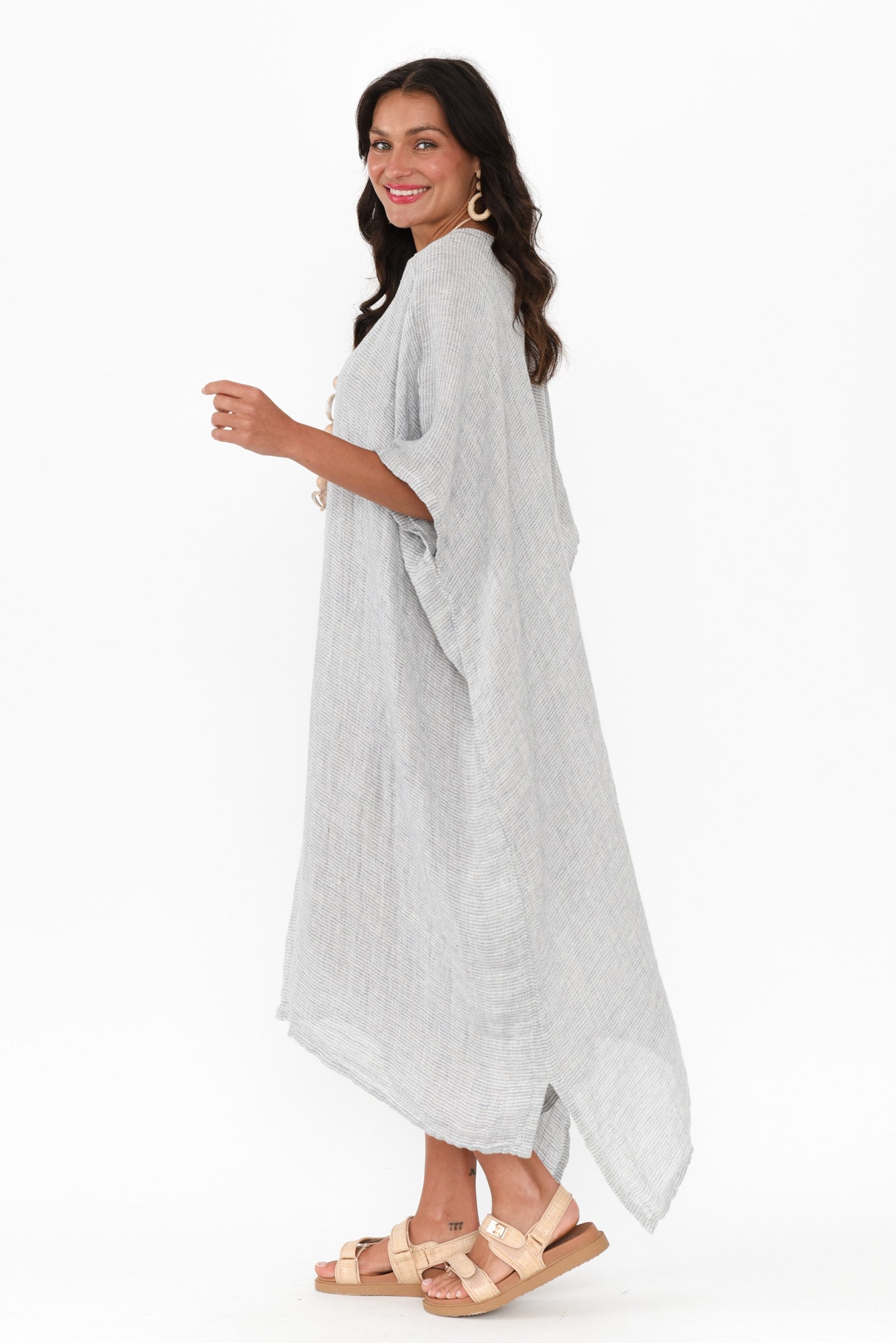 BUFFY LIGHT BLUE STRIPE LINEN KAFTAN
