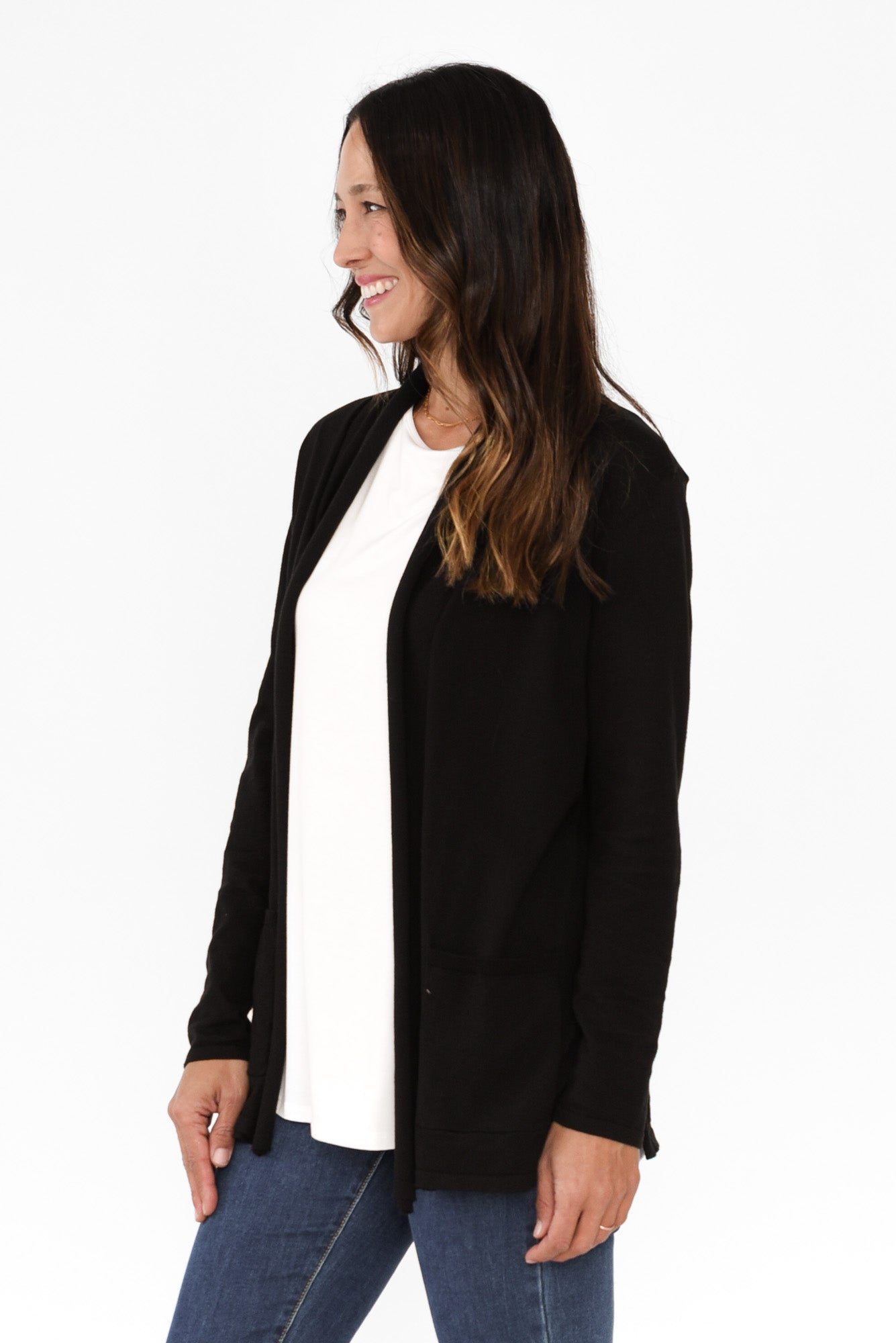 CALLY BLACK COTTON POCKET CARDIGAN