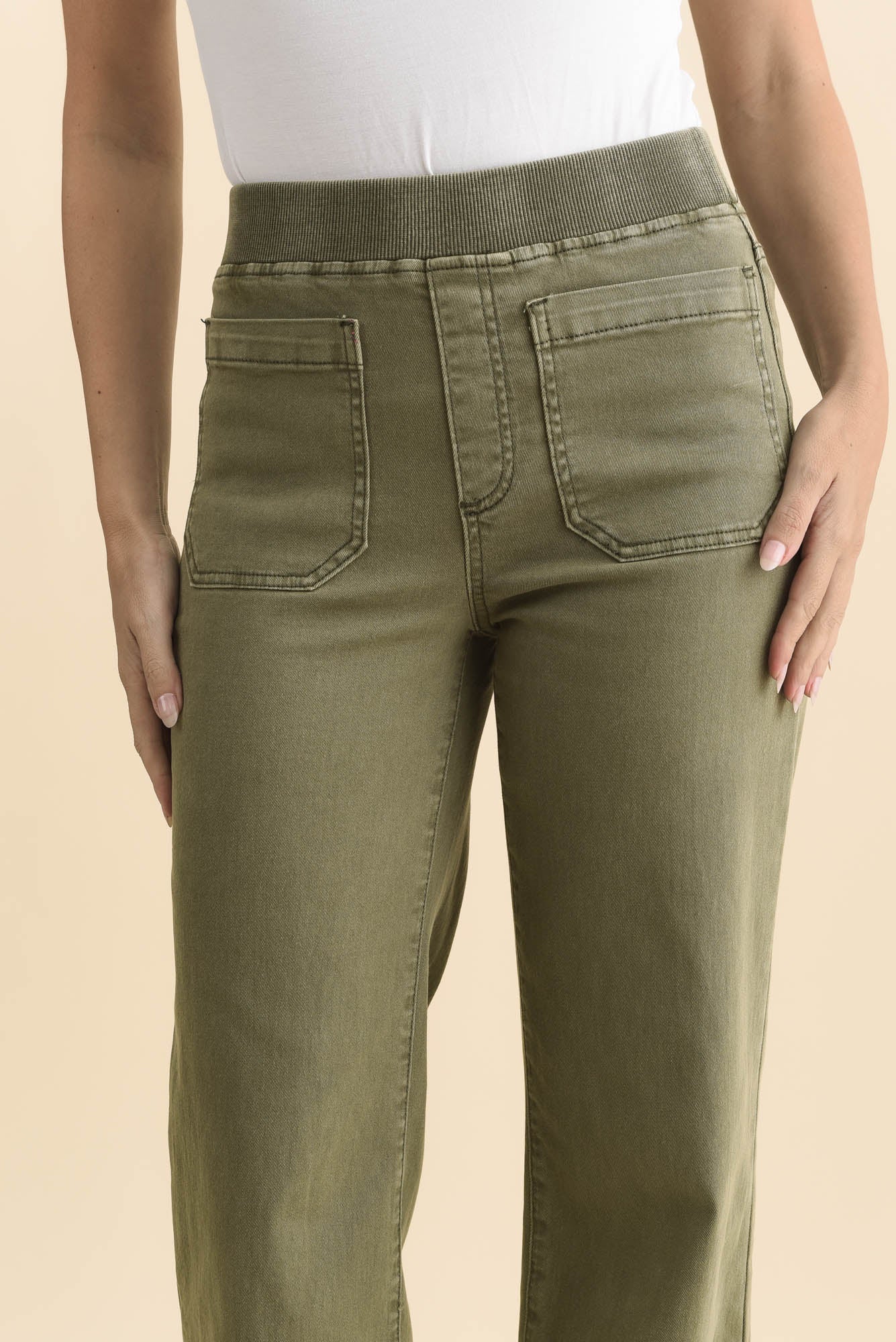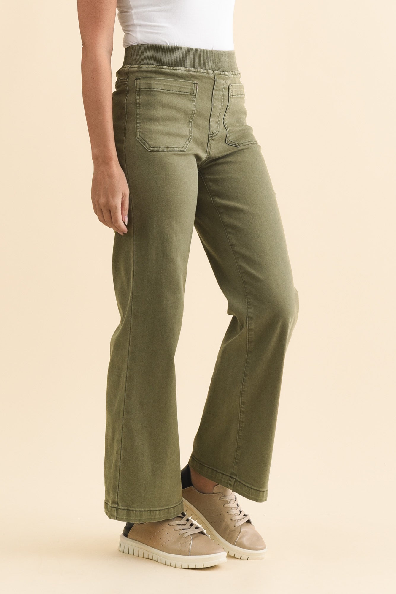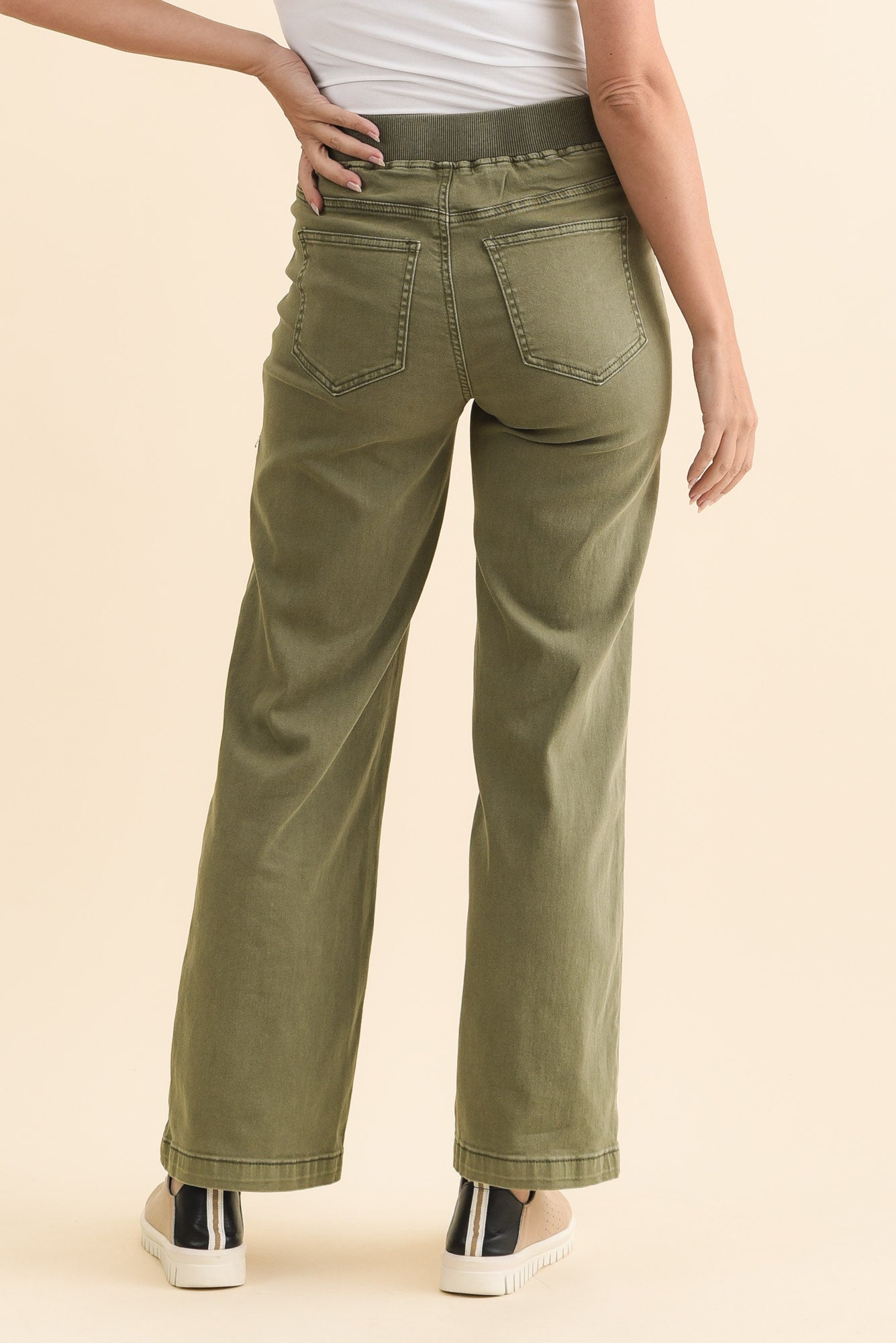 Features a wide, stretchy ribbed waistband that provides comfort and a flattering fit