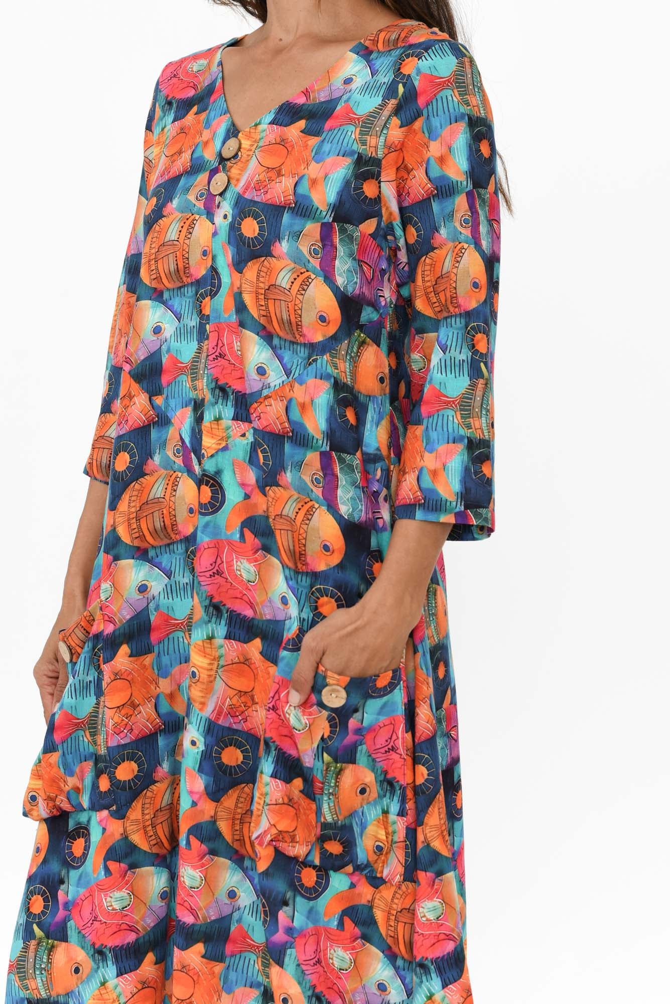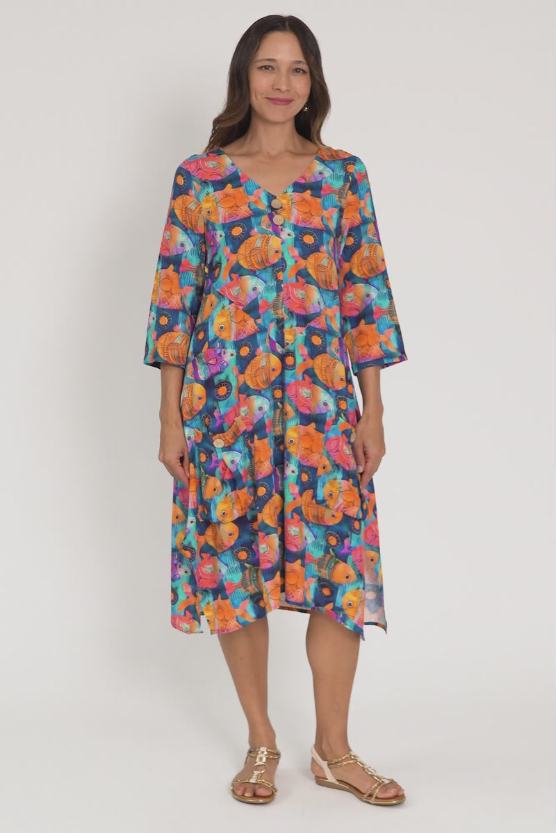 Cassidy Blue Fish Linen Cotton Dress