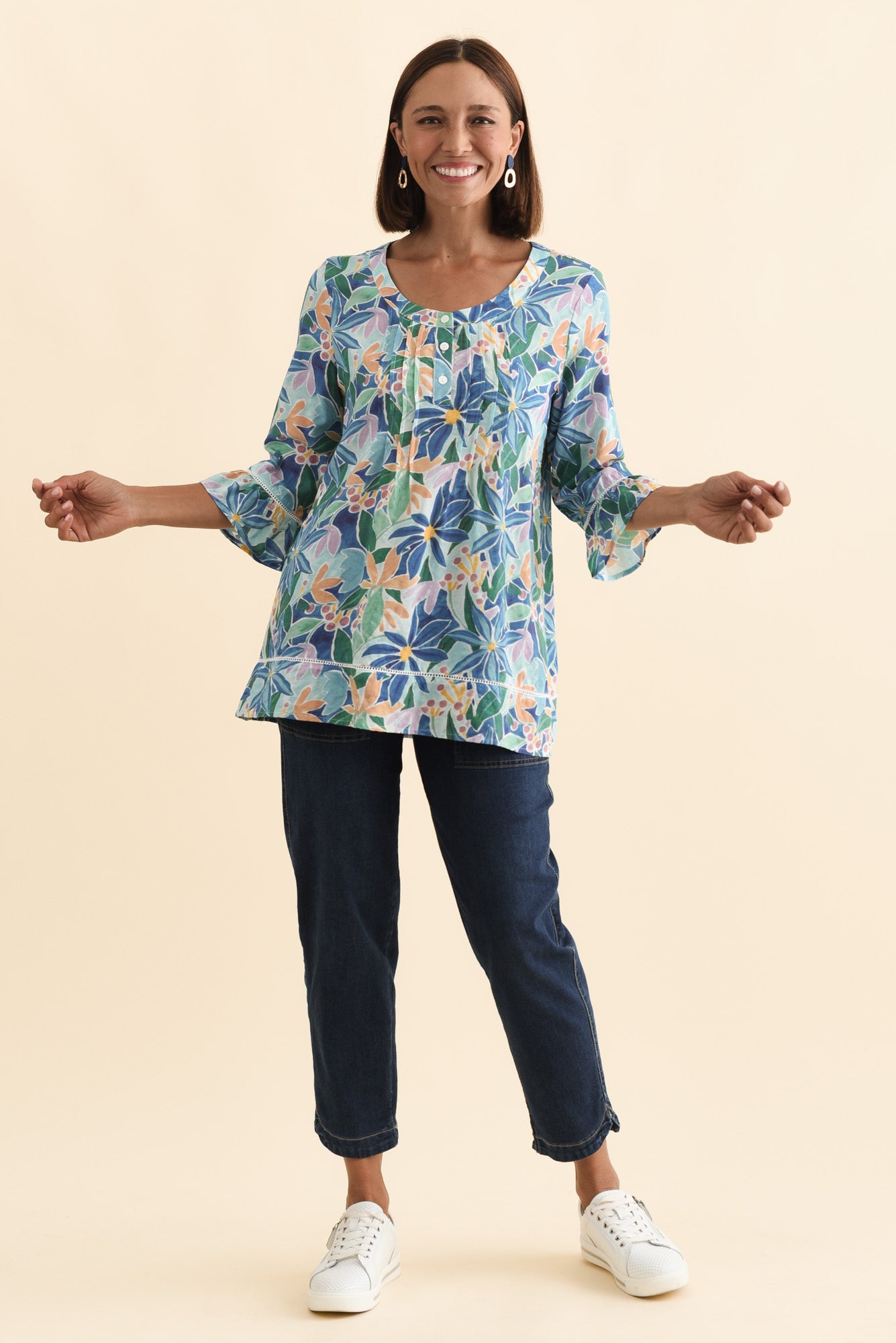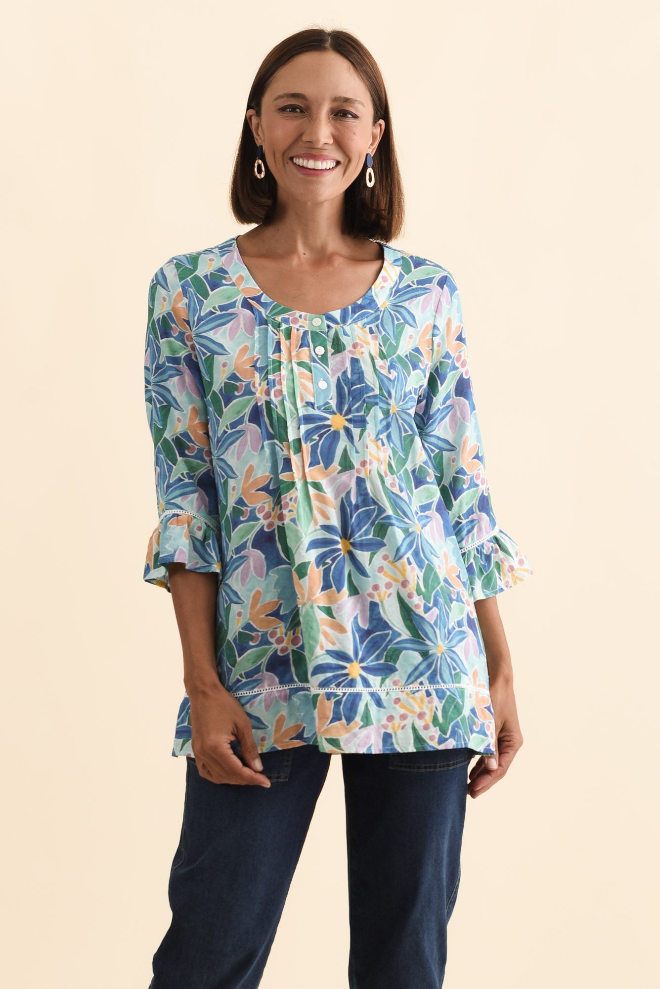 CASSIDY BLUE GARDEN COTTON SLEEVED TOP