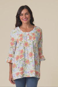 Cassidy Orange Wildflower Cotton Sleeved Top