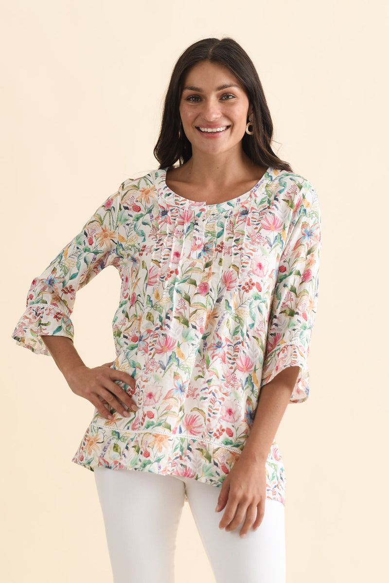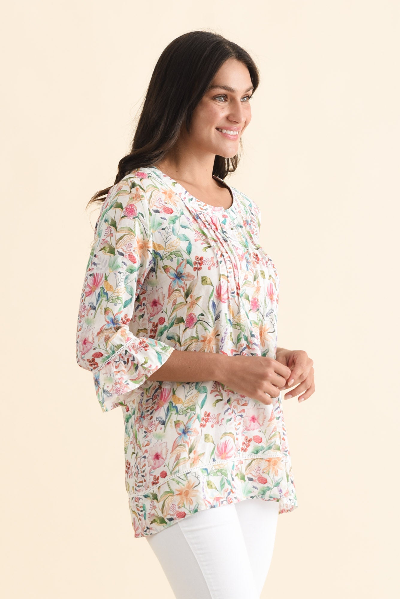CASSIDY PINK FLORAL COTTON SLEEVED TOP