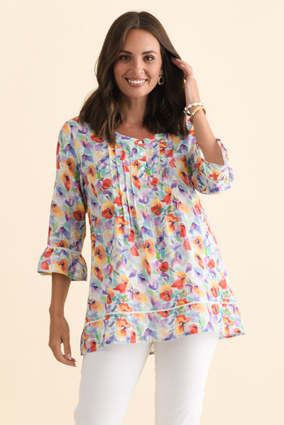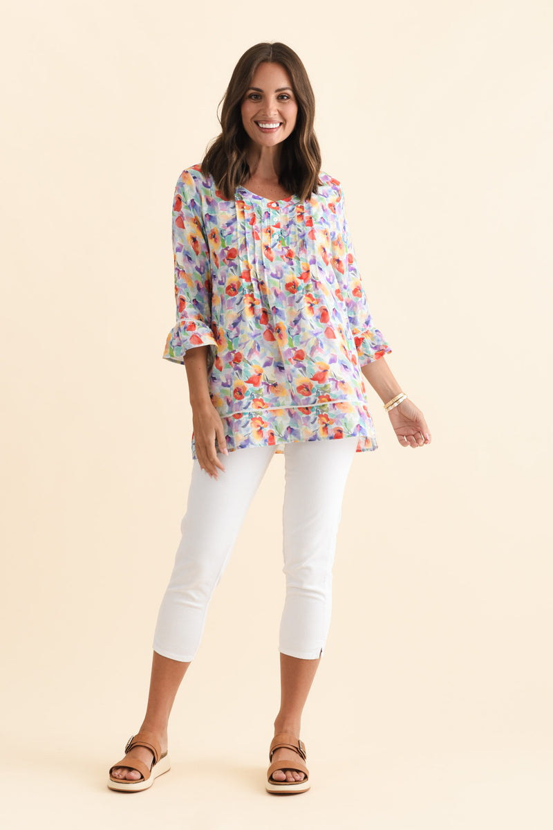 Cassidy Red Blossom Cotton Sleeved Top