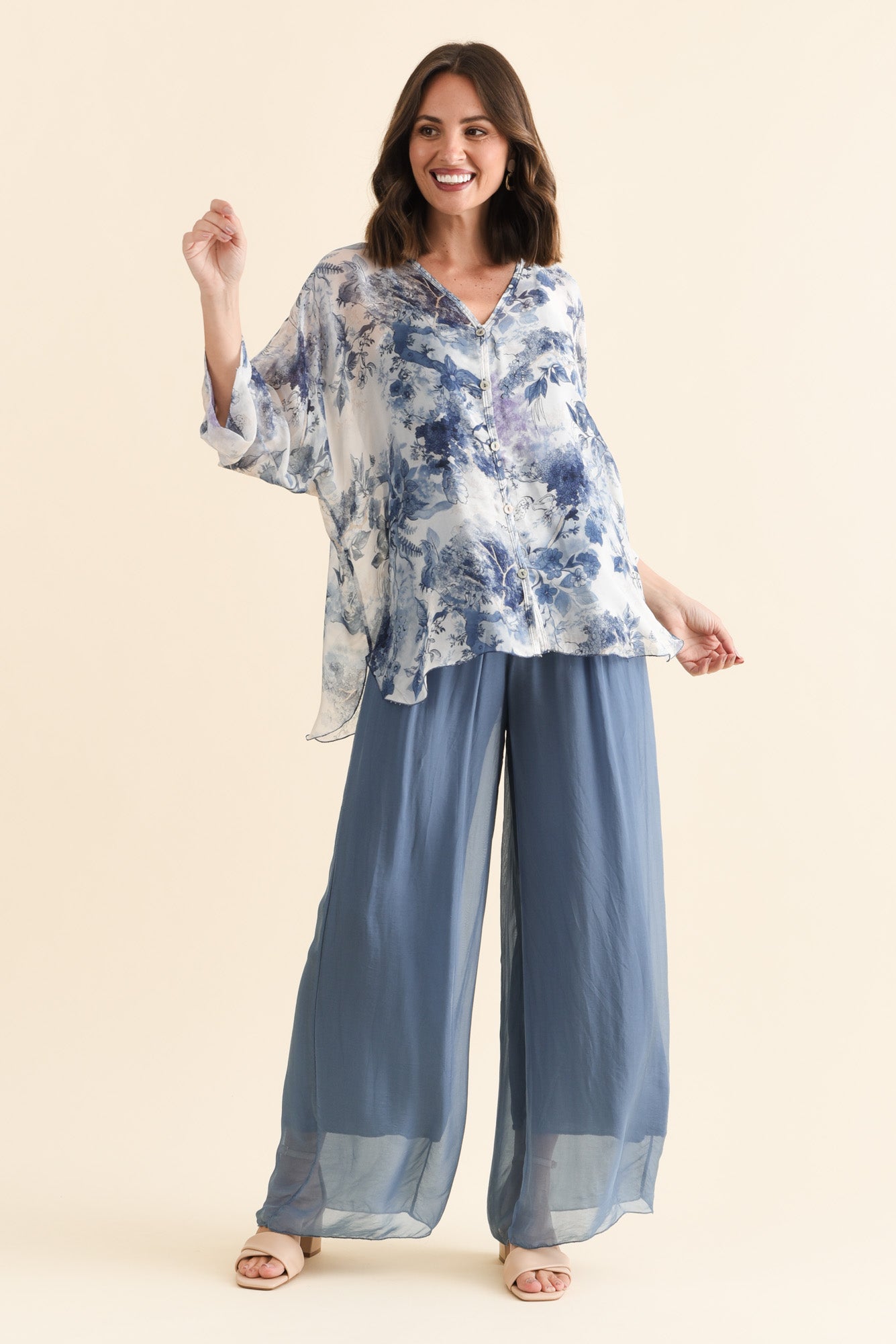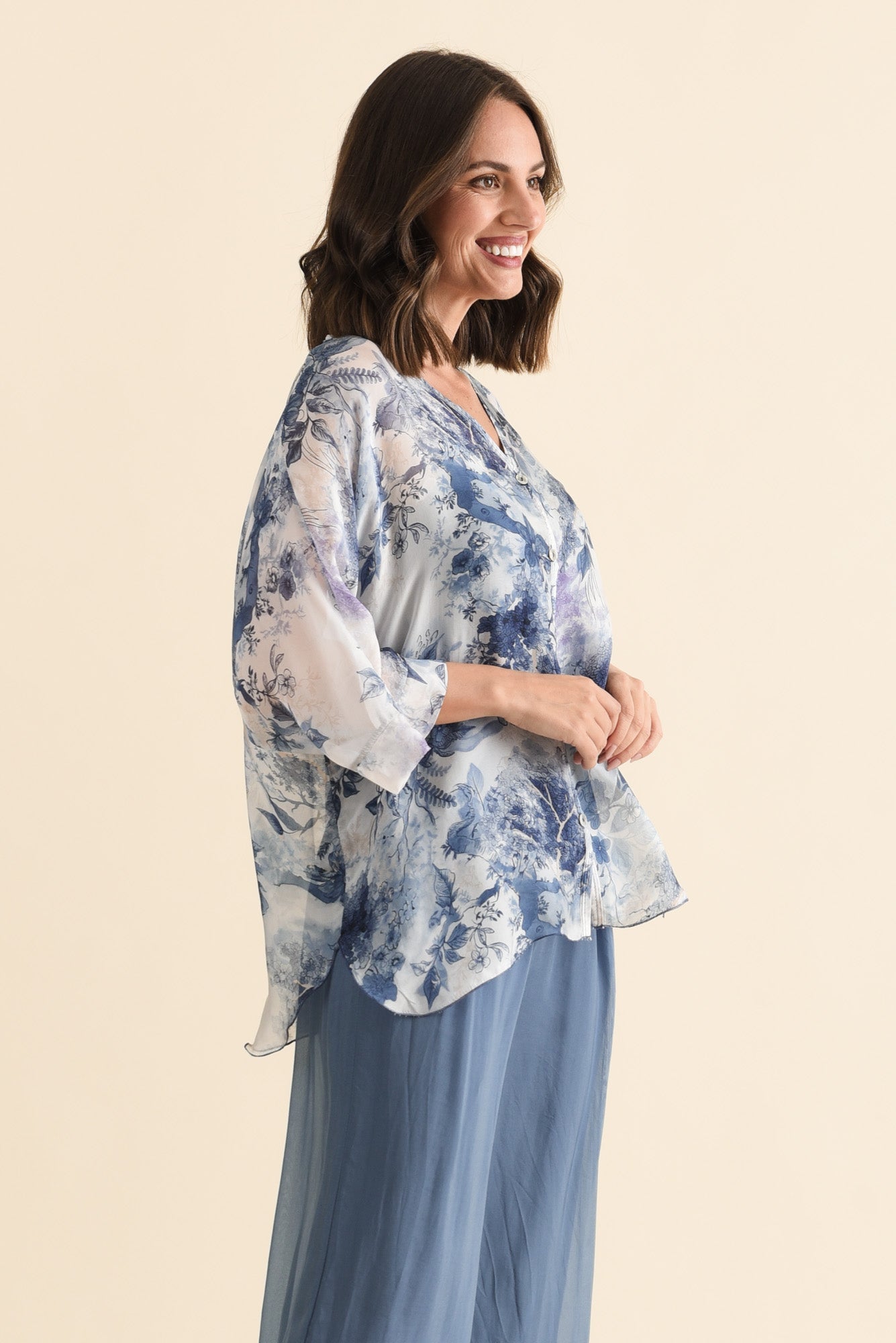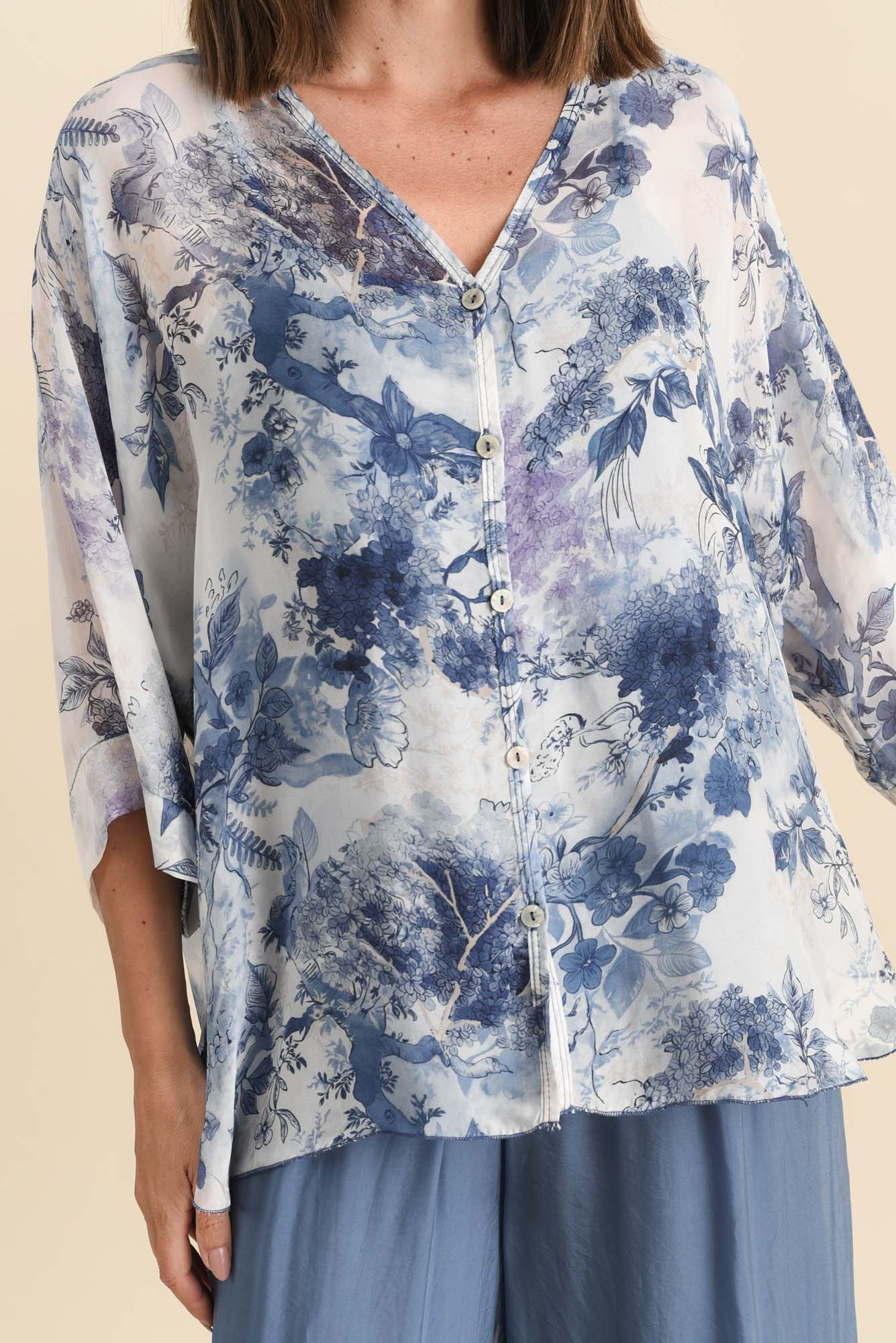 Cathleen Blue Floral Silk Blouse
