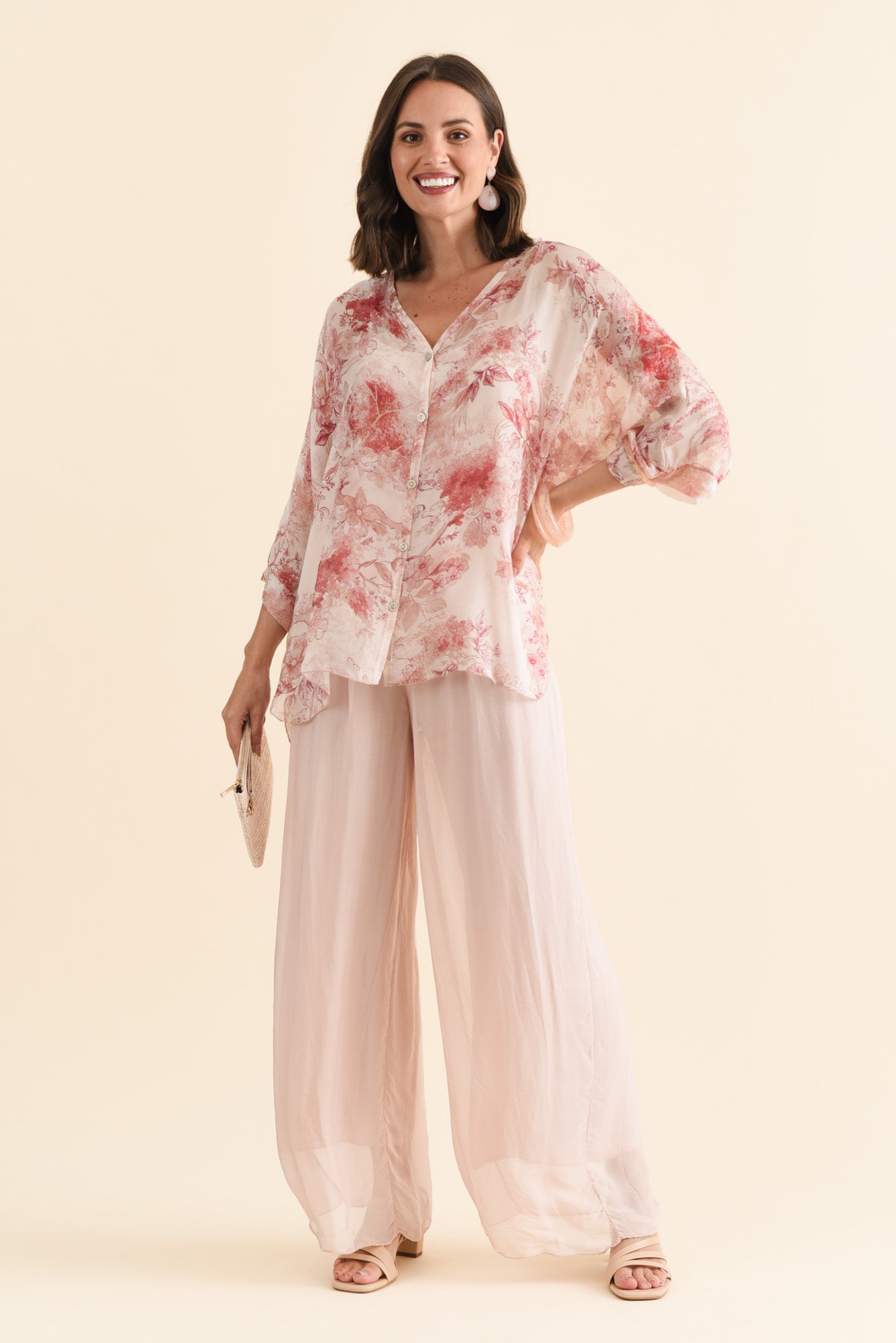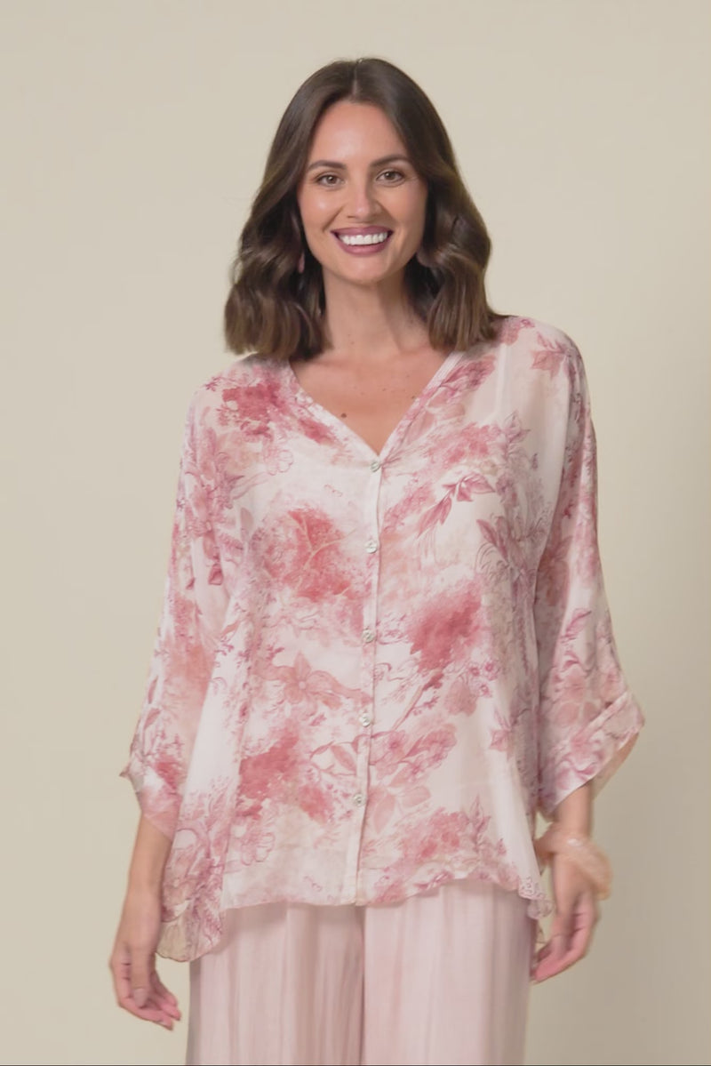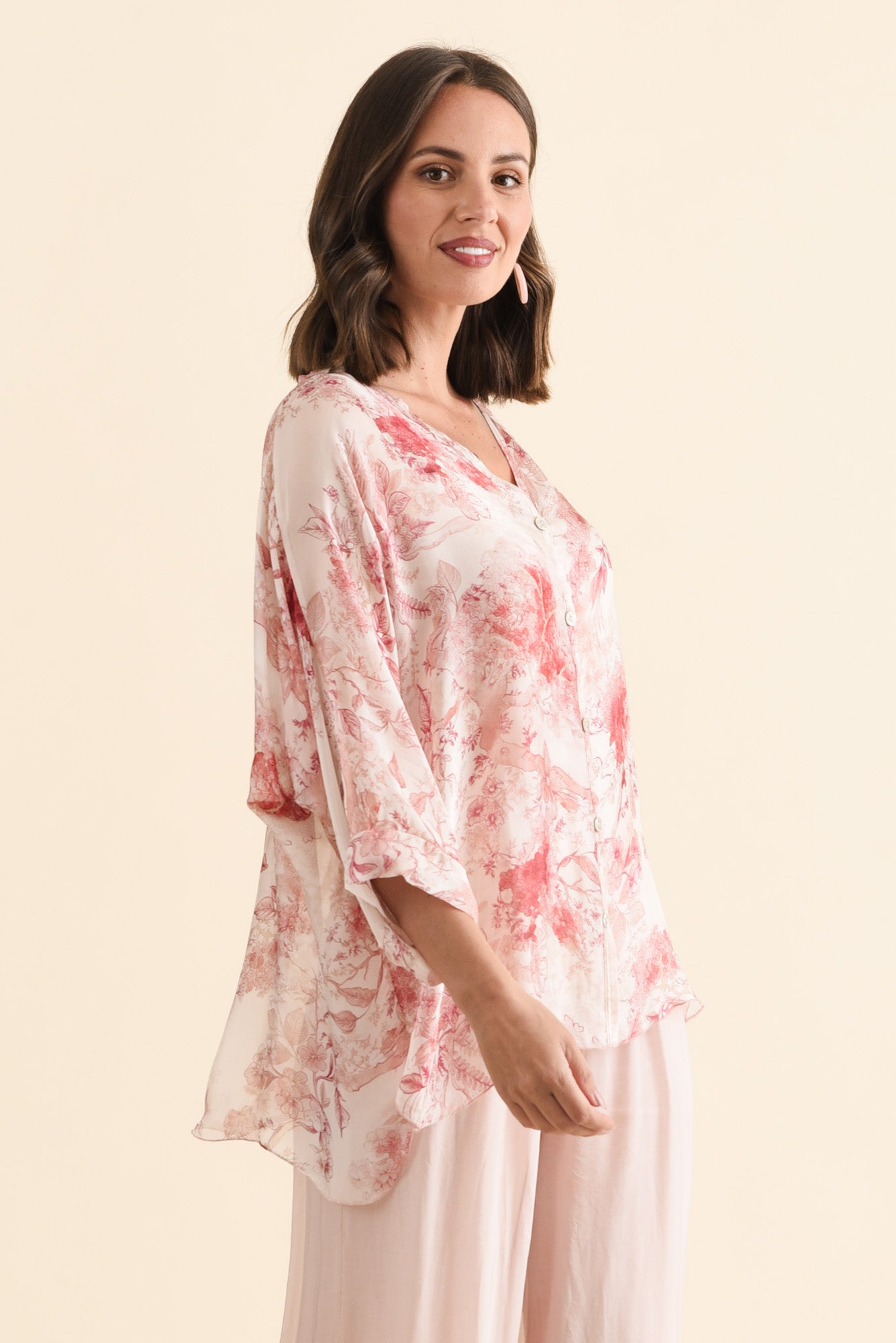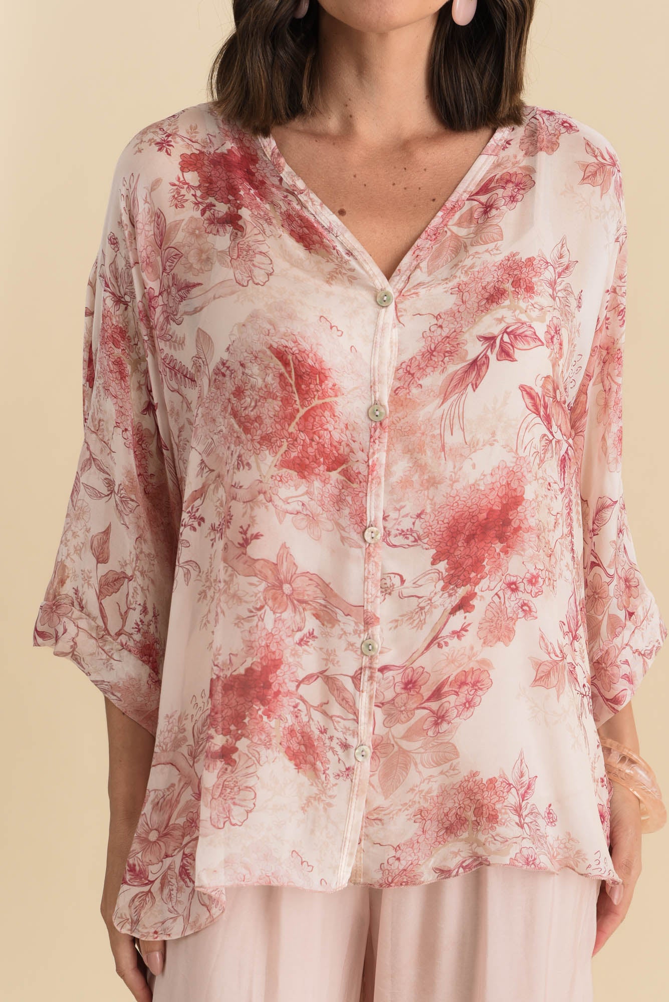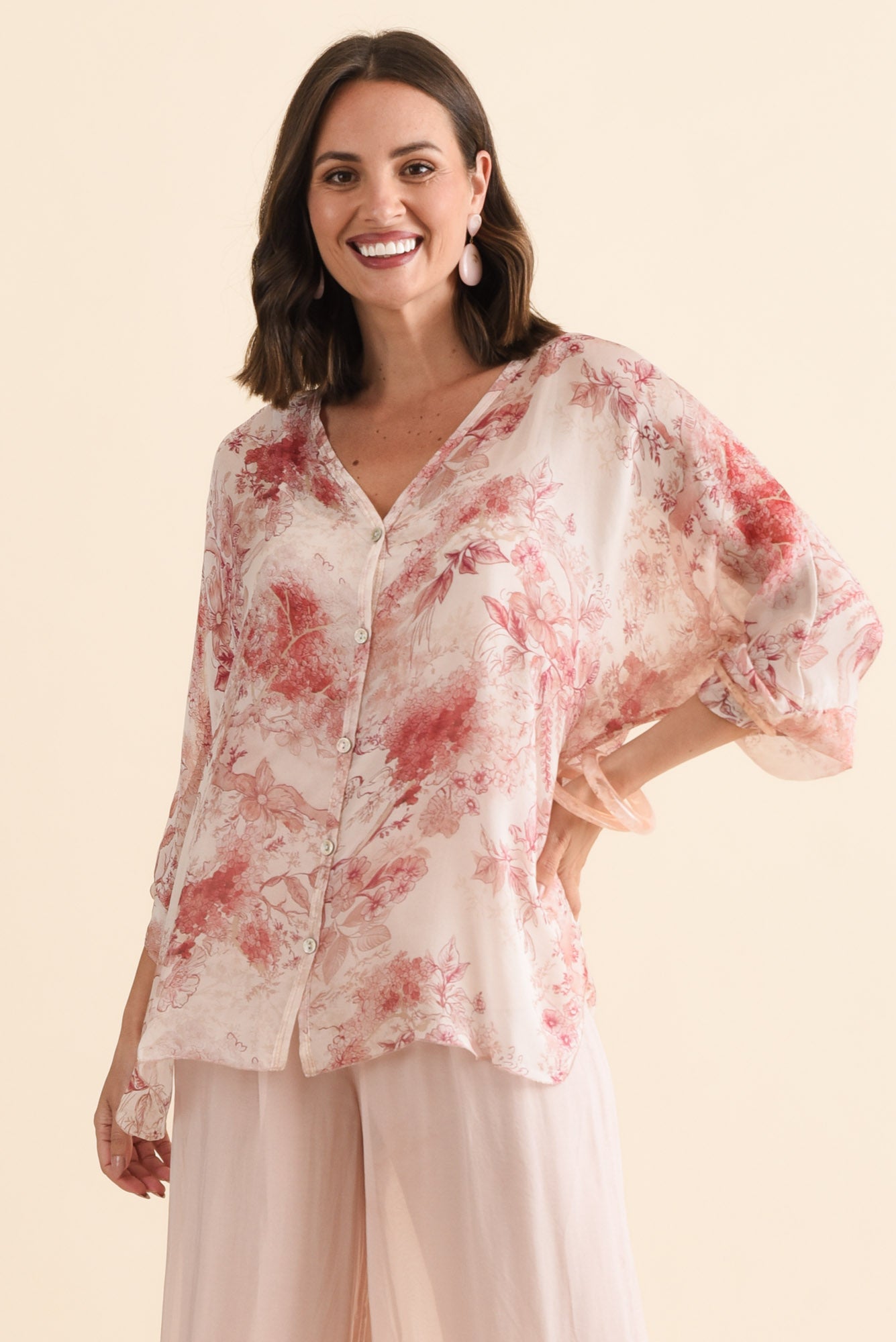 CATHLEEN PINK FLORAL SILK BLOUSE