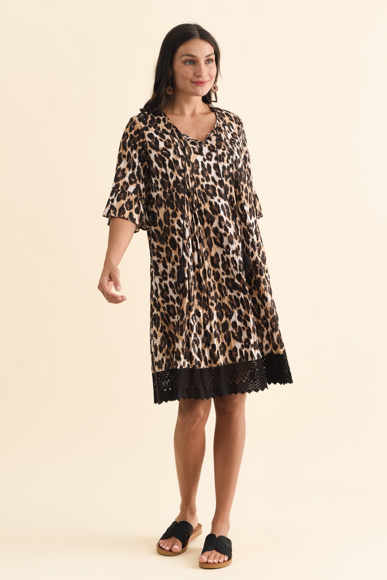 CAYMAN BROWN LEOPARD COTTON TUNIC DRESS