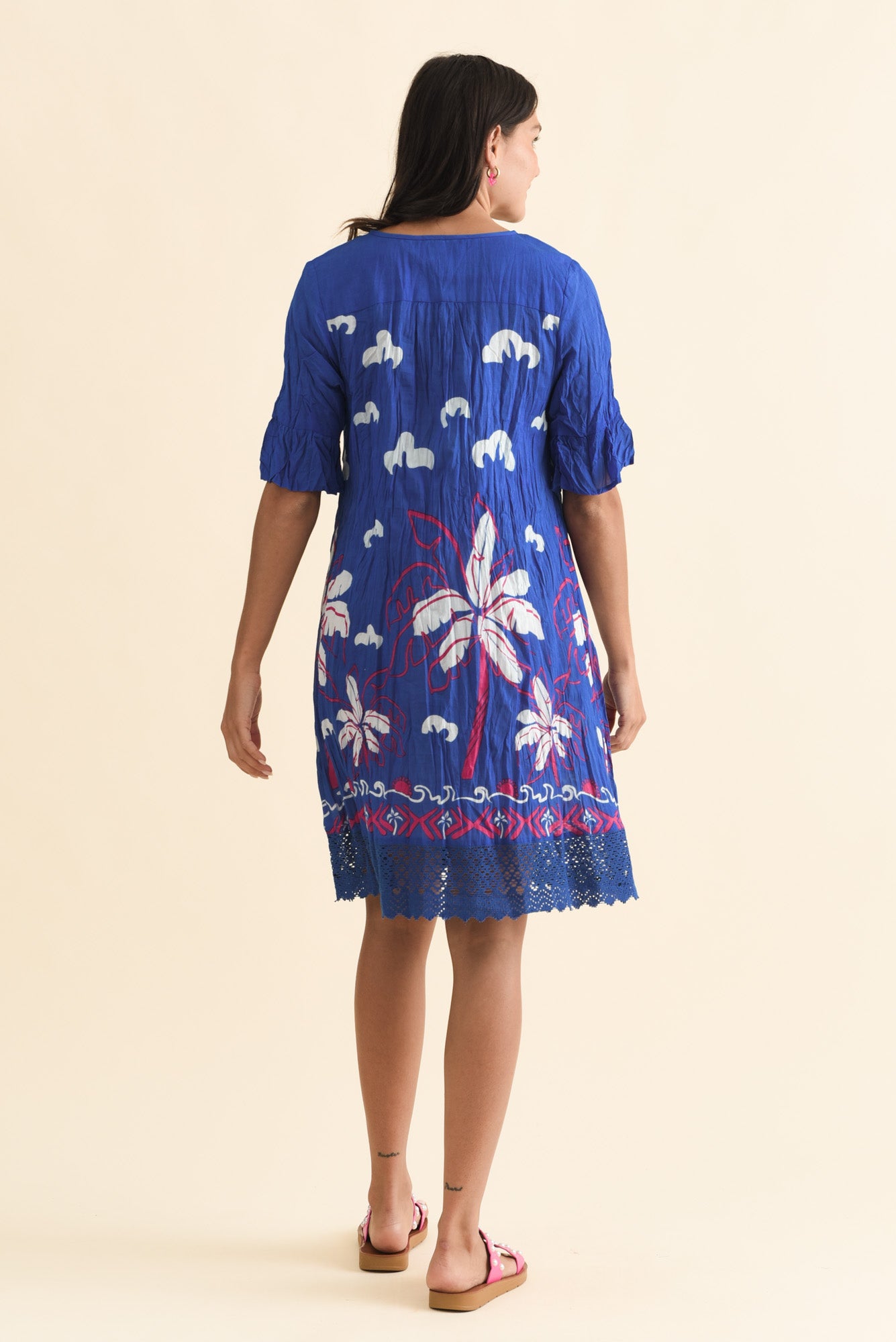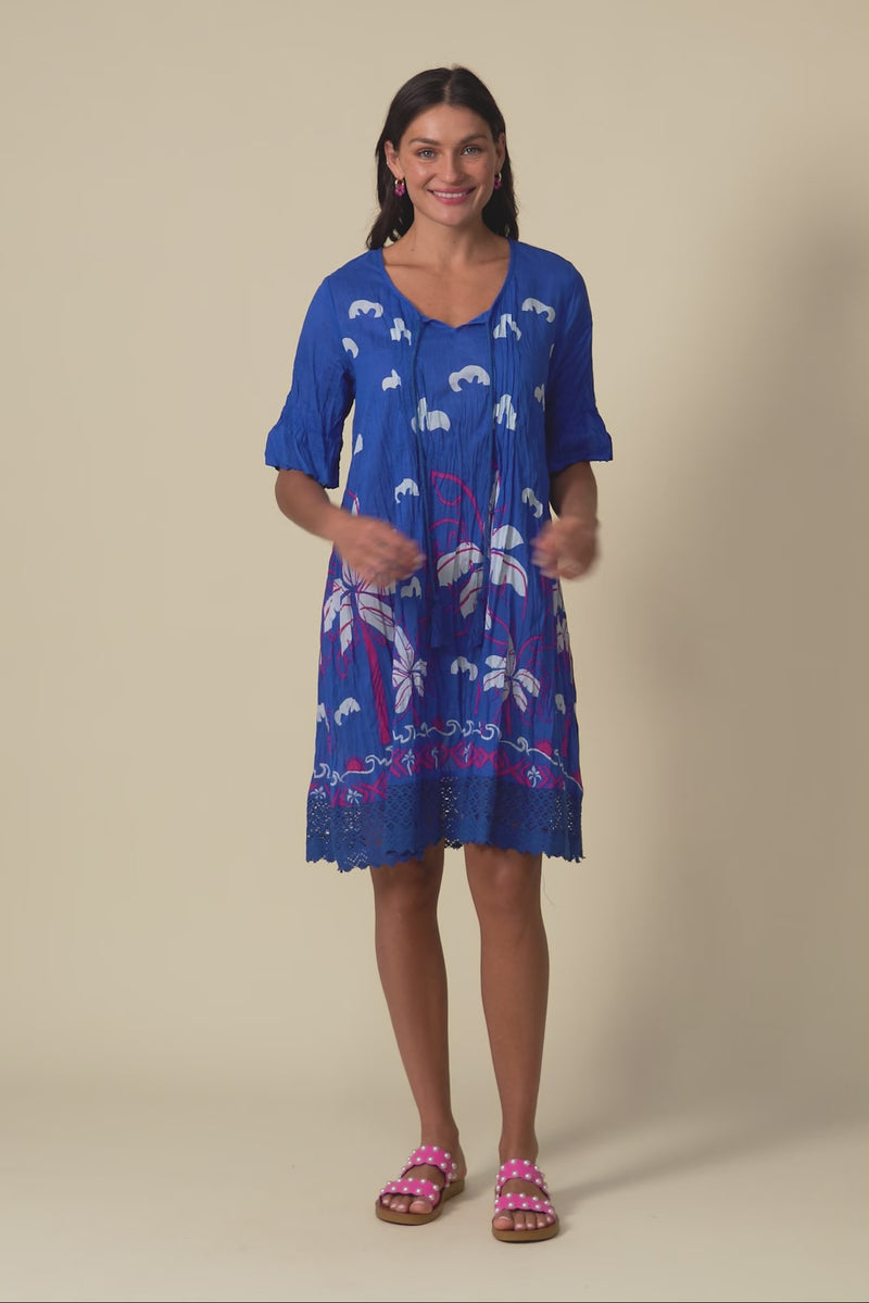 CAYMAN COBALT TROPICAL COTTON TUNIC DRESS