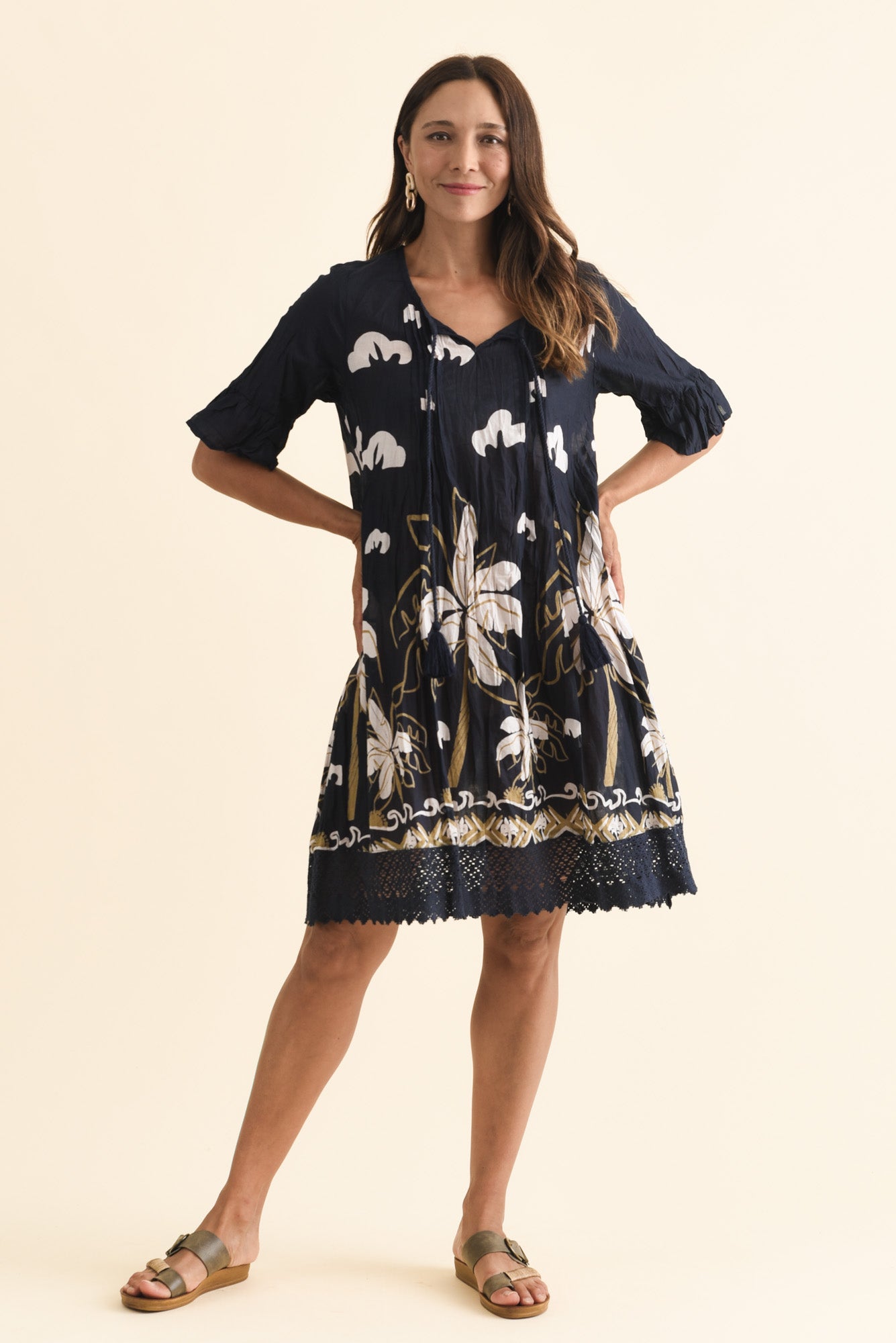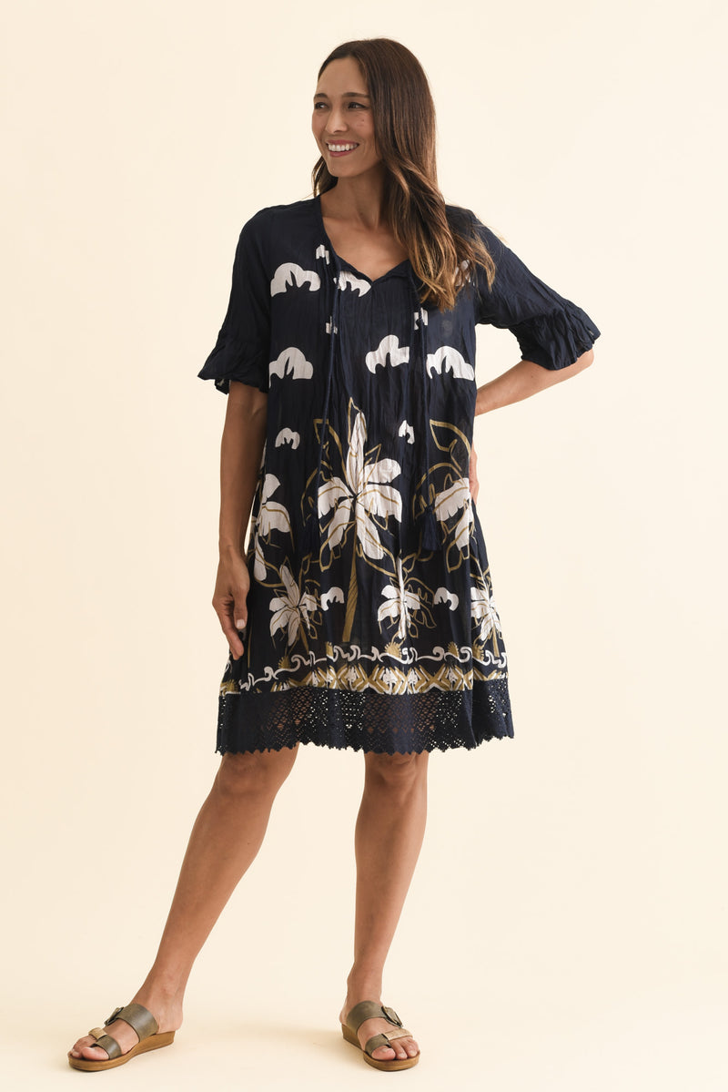 CAYMAN NAVY SEASIDE COTTON TUNIC DRESS