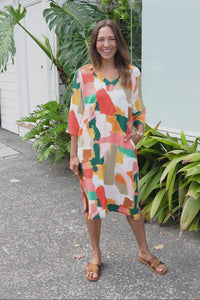 Celine Pink Abstract Linen Cotton Dress