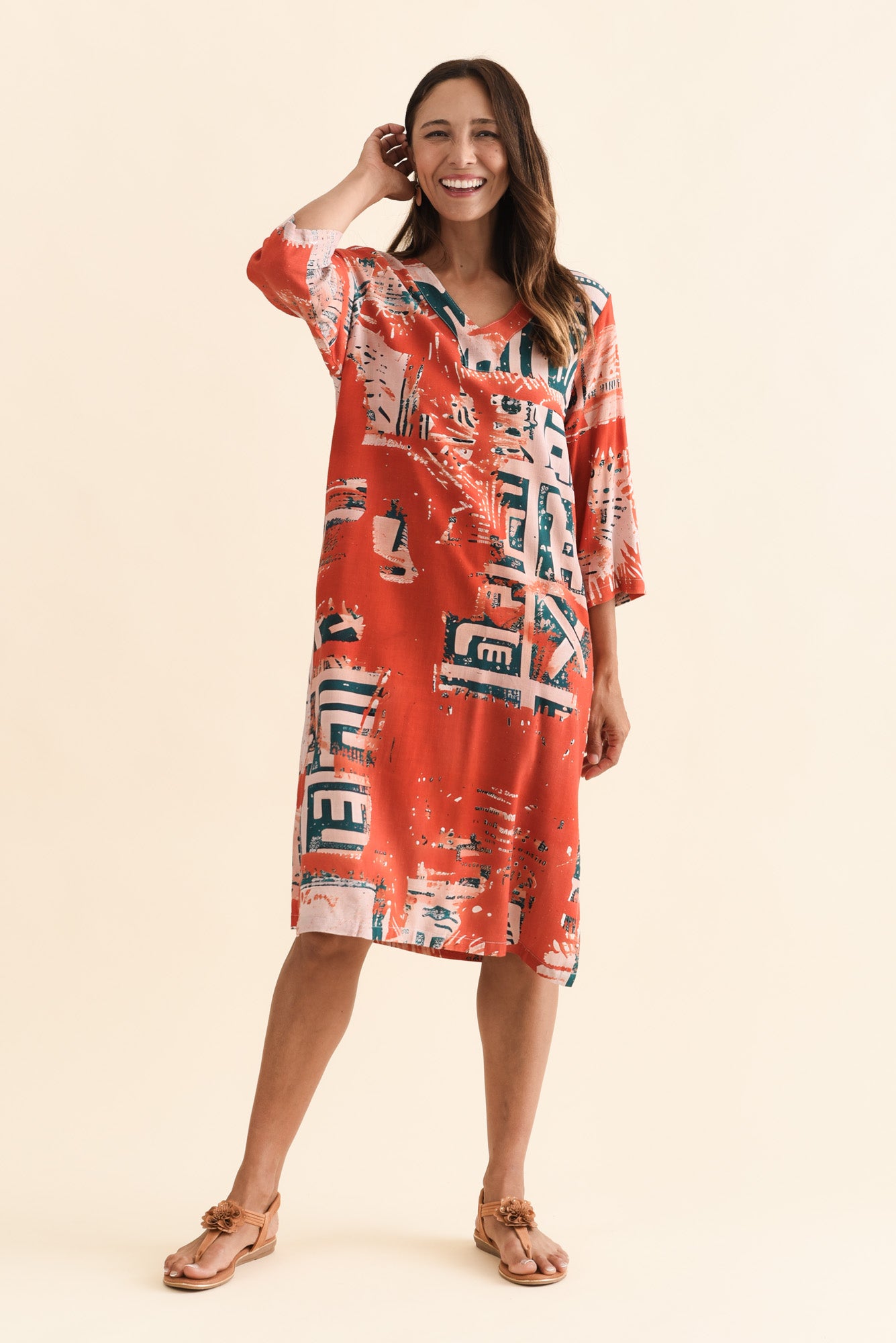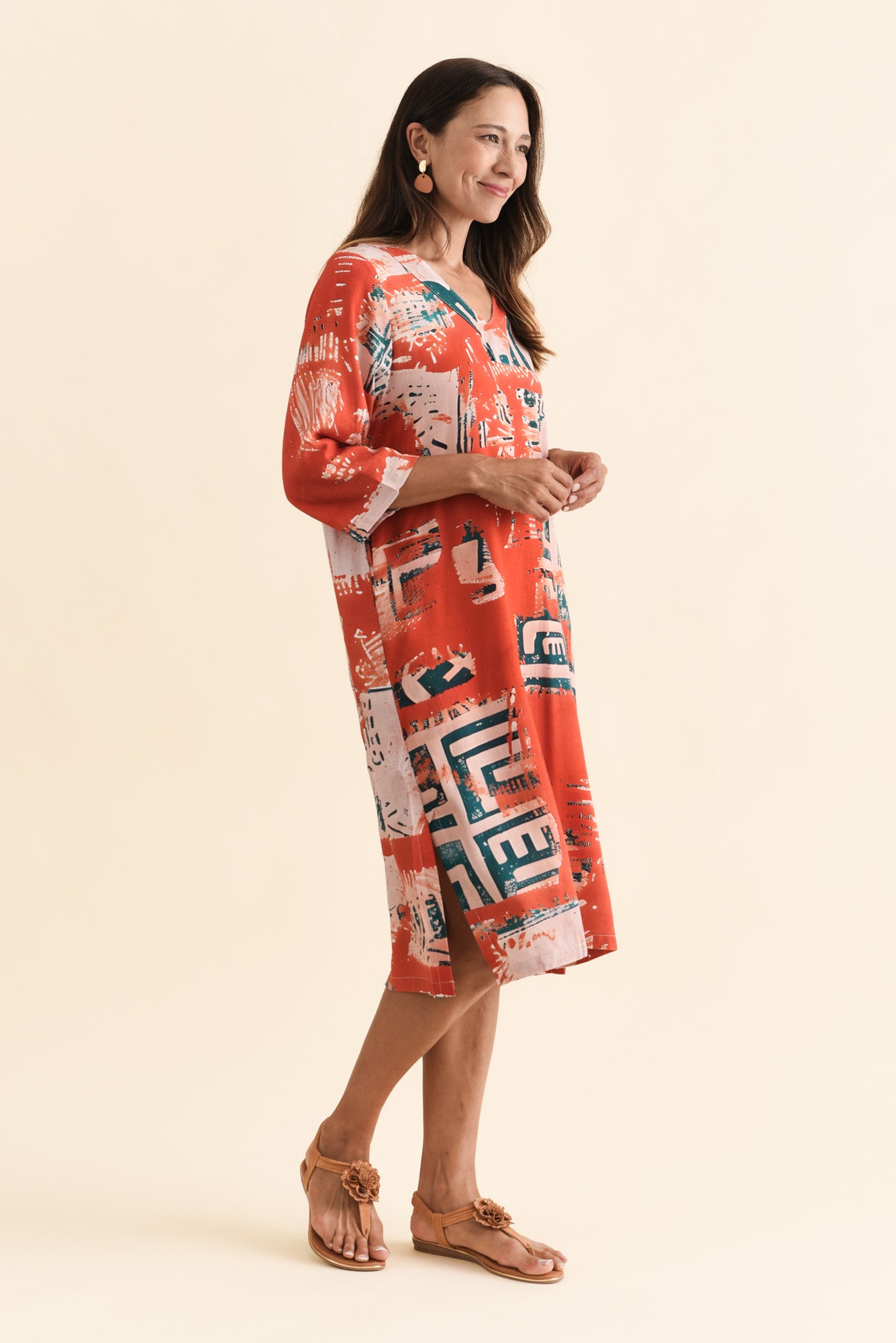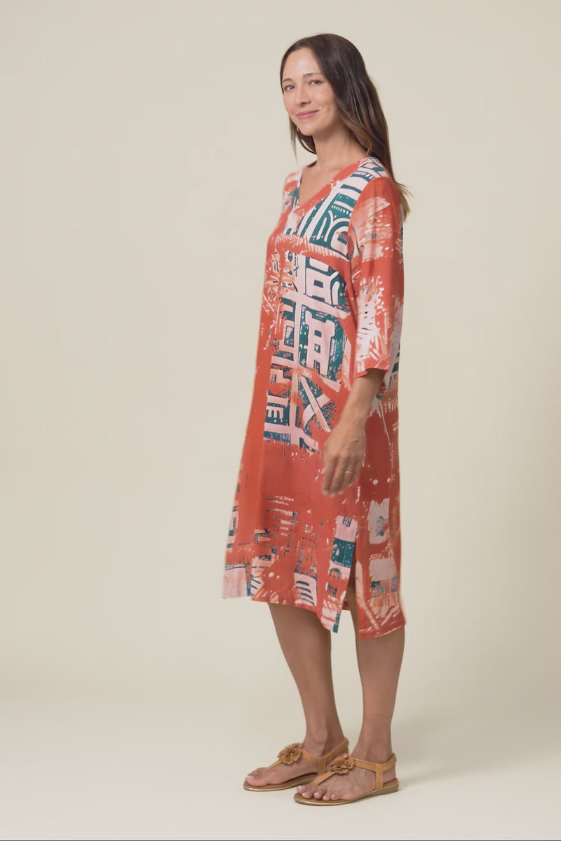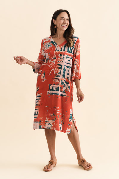 CELINE RUST ABSTRACT LINEN COTTON DRESS