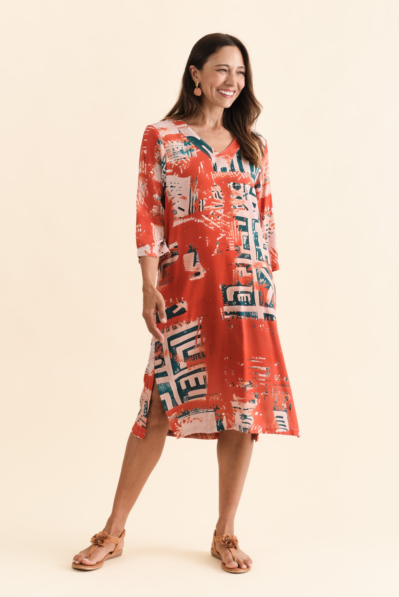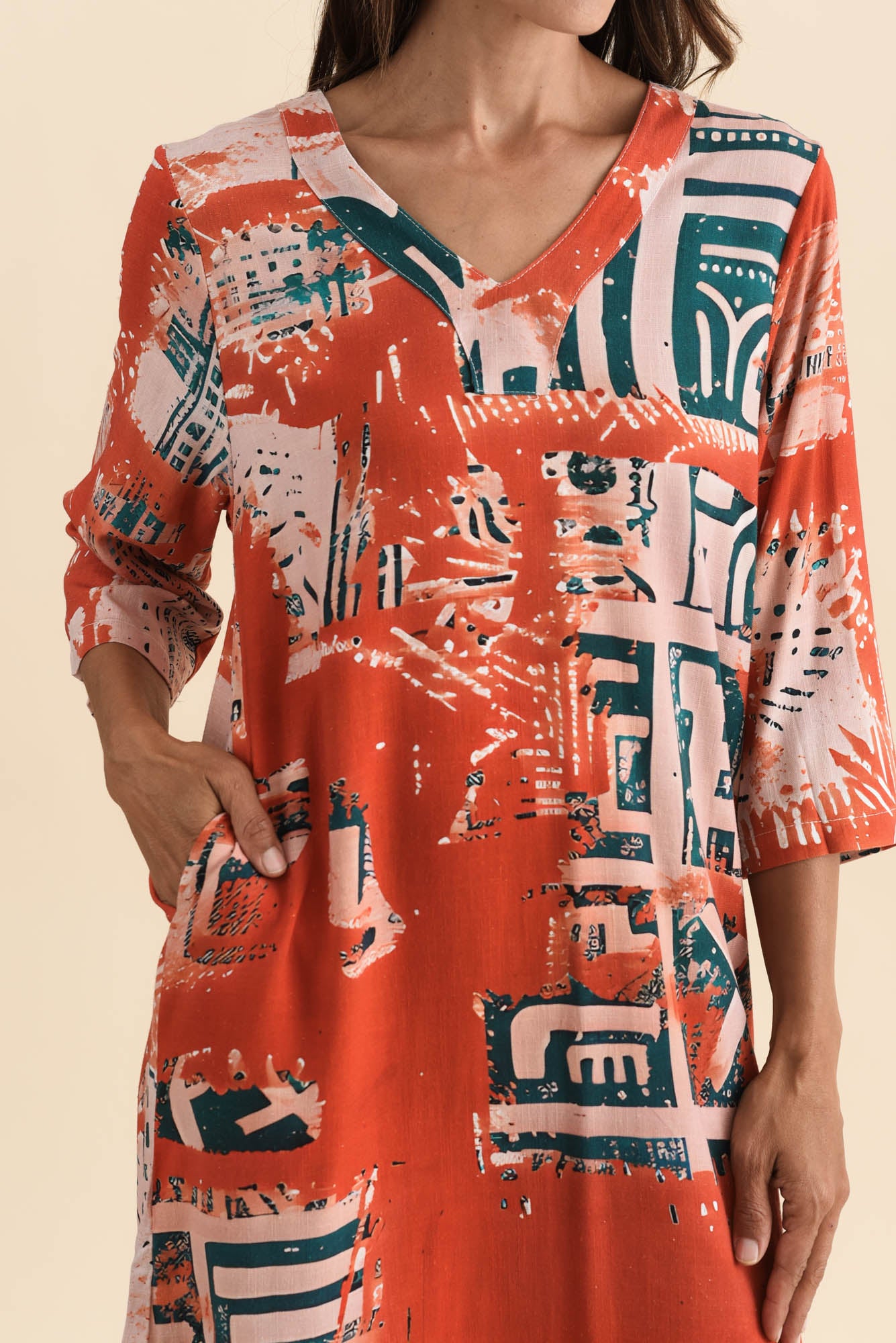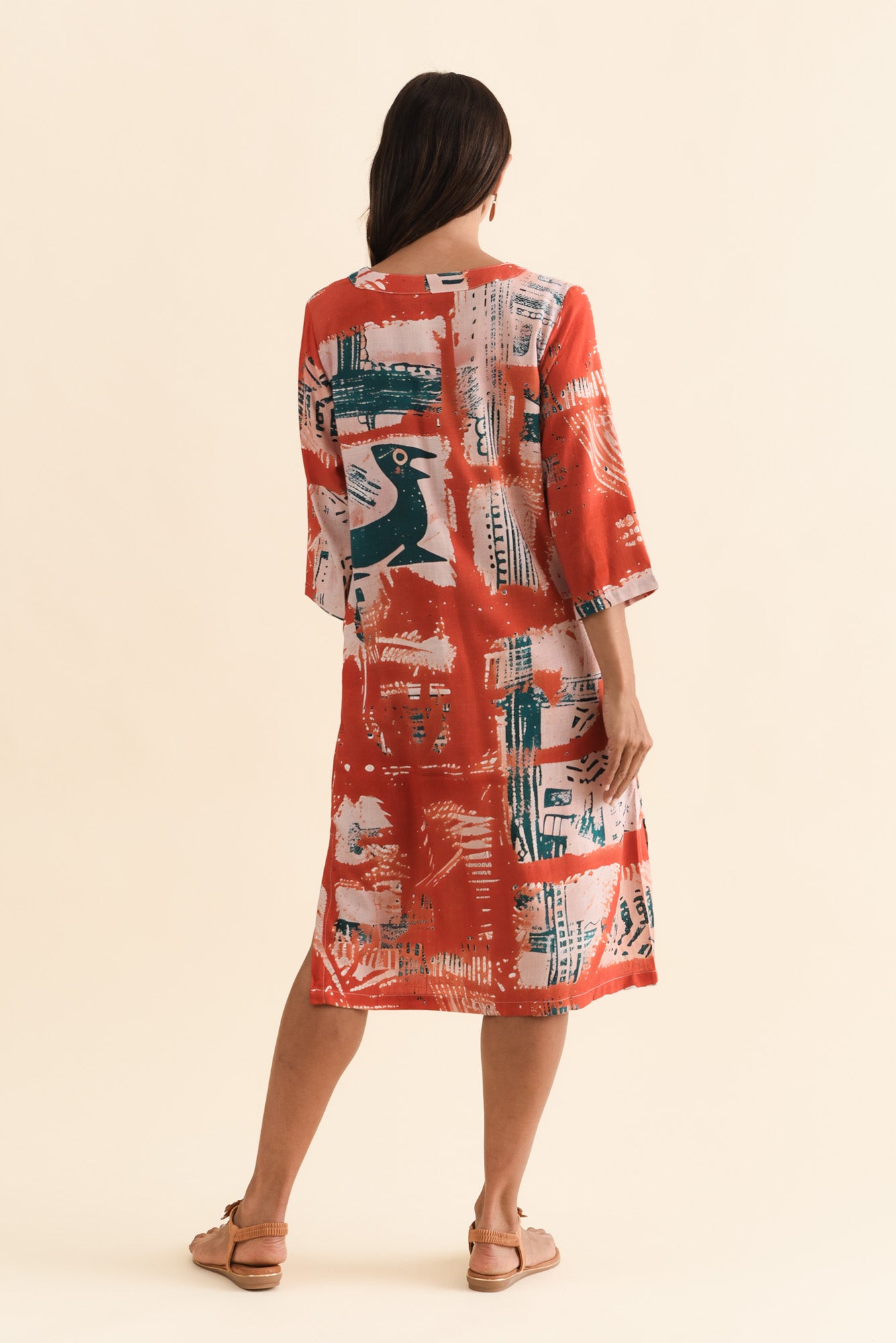 CELINE RUST ABSTRACT LINEN COTTON DRESS
