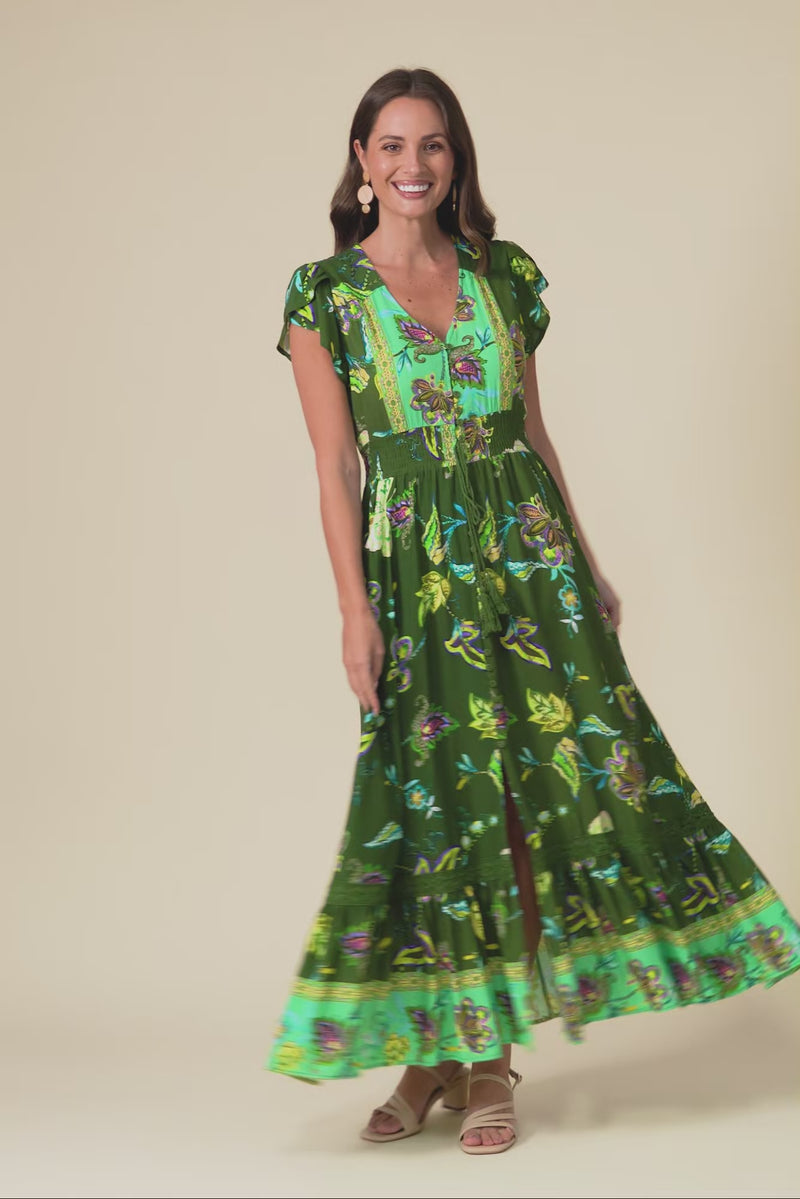 Chappelle Green Flower Button Dress