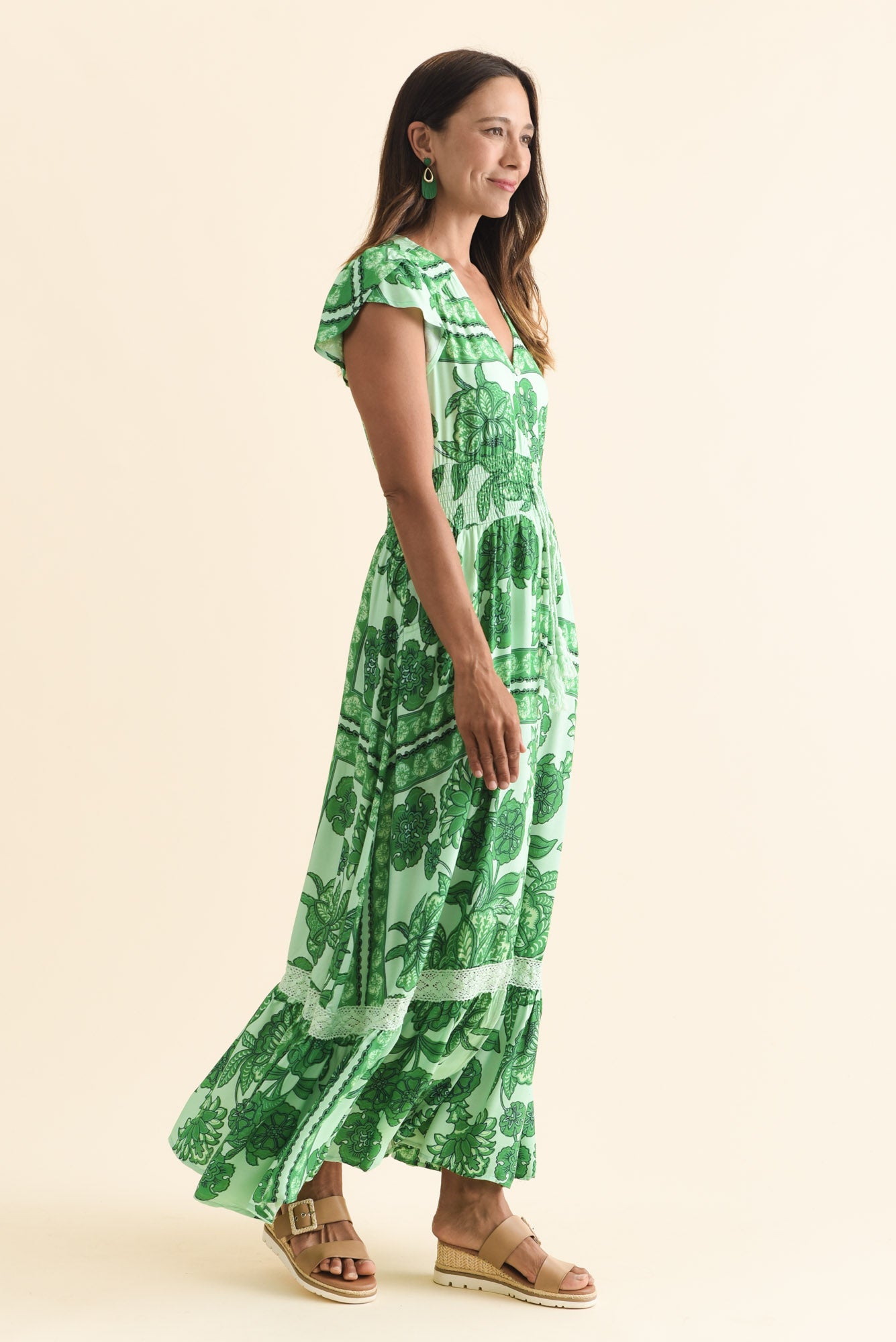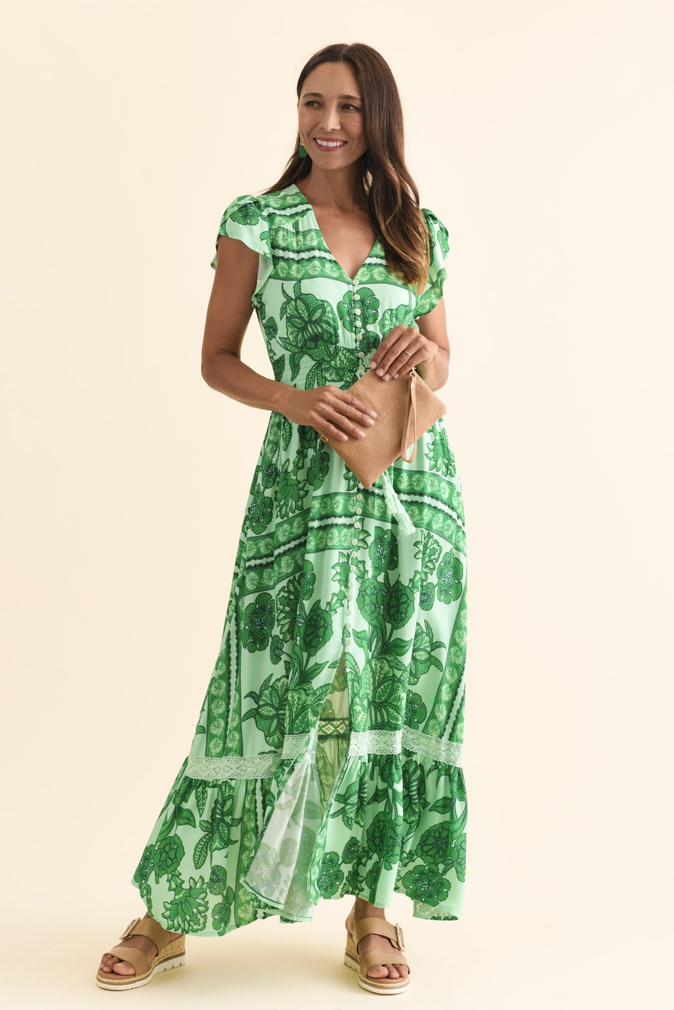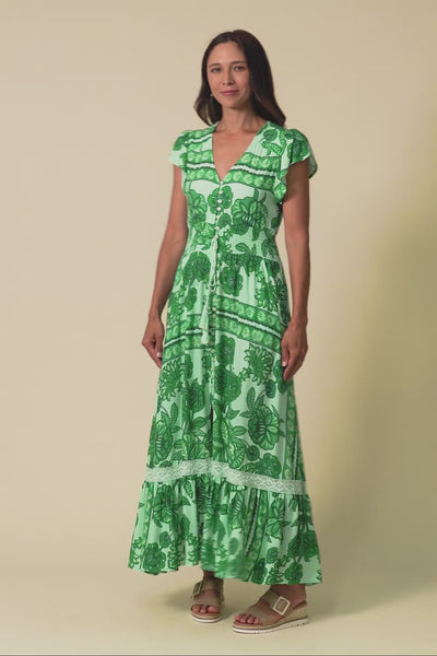 CHAPPELLE GREEN GARDEN BUTTON DRESS