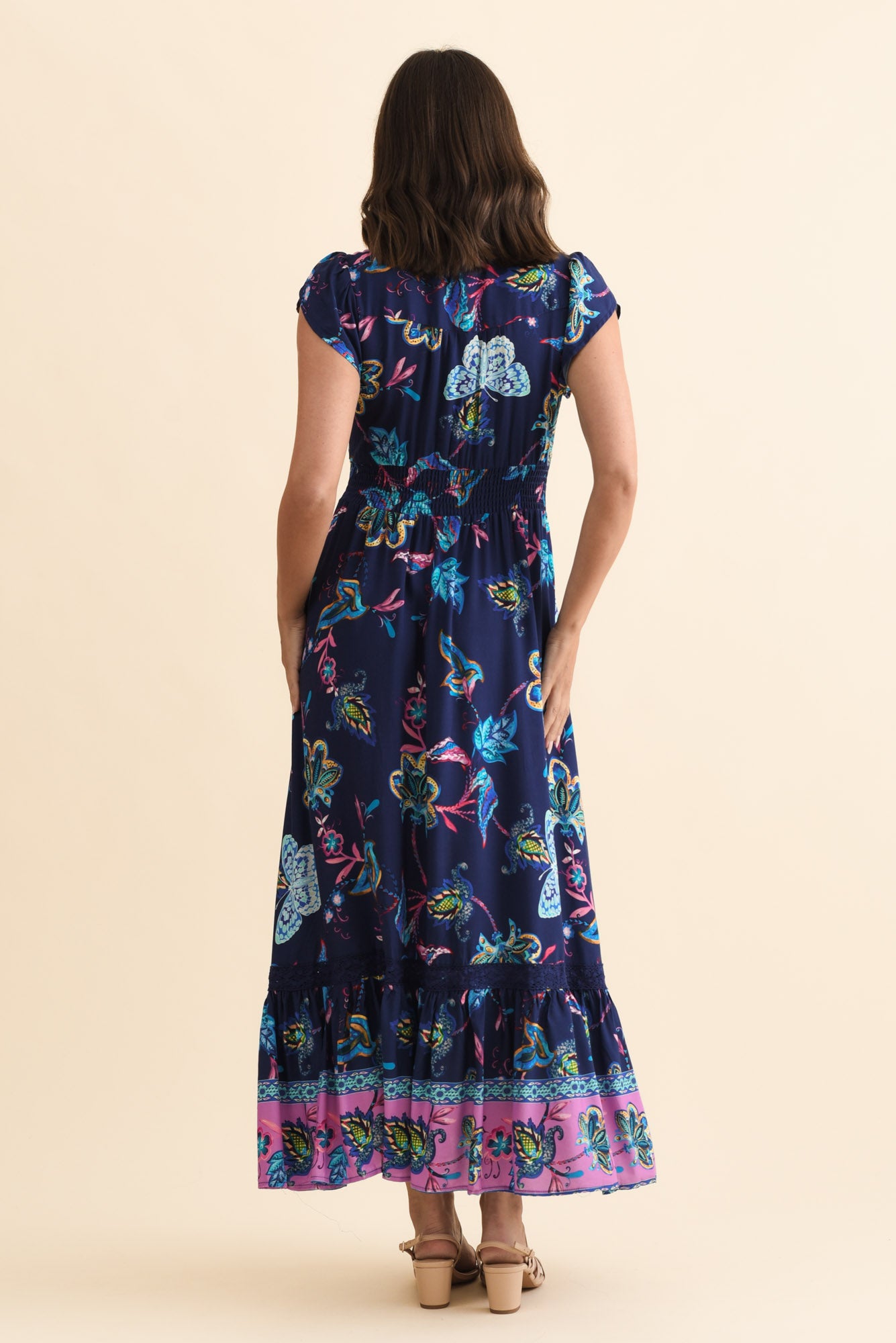 Chappelle Navy Flower Button Dress