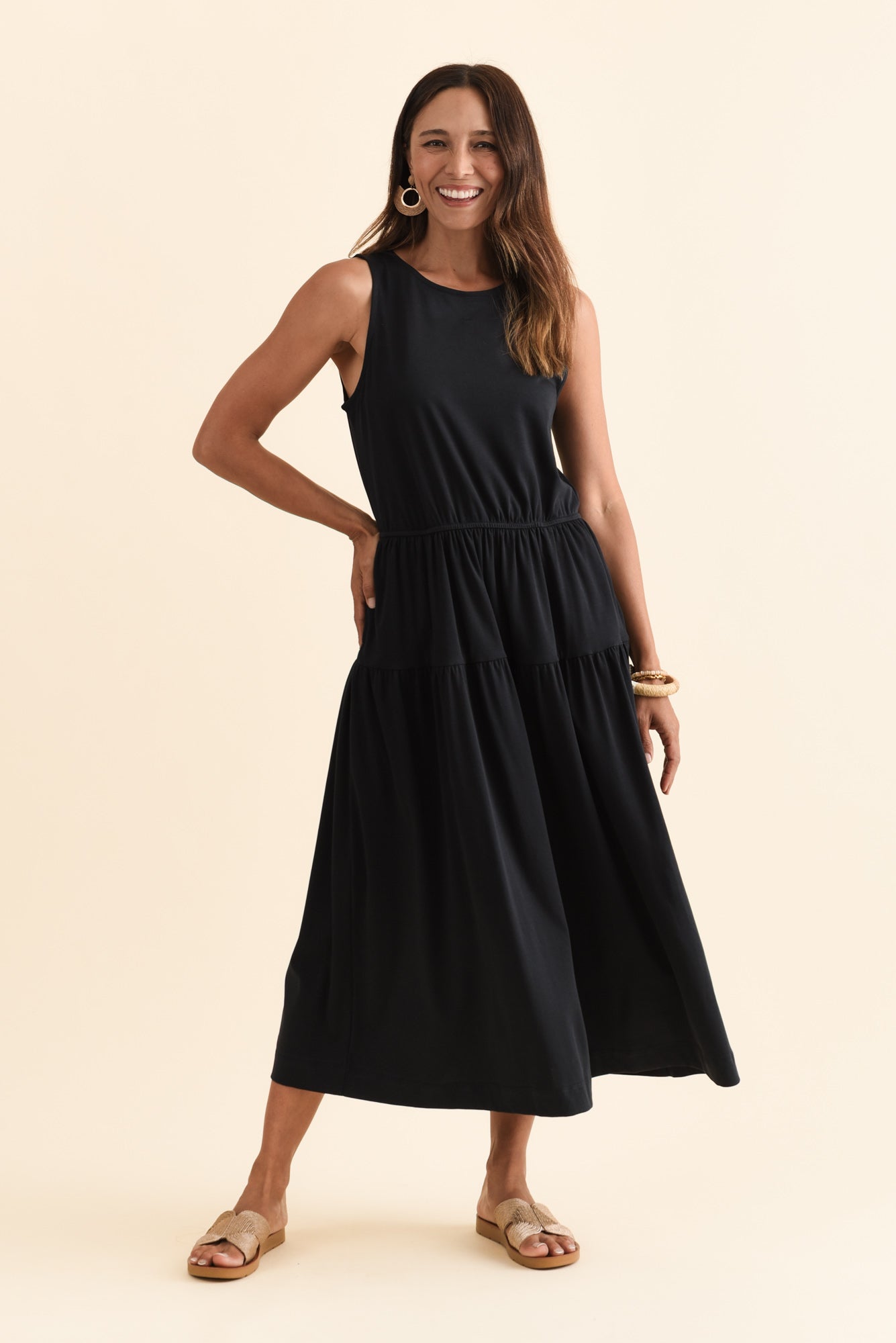 COCO BLACK COTTON TIER DRESS