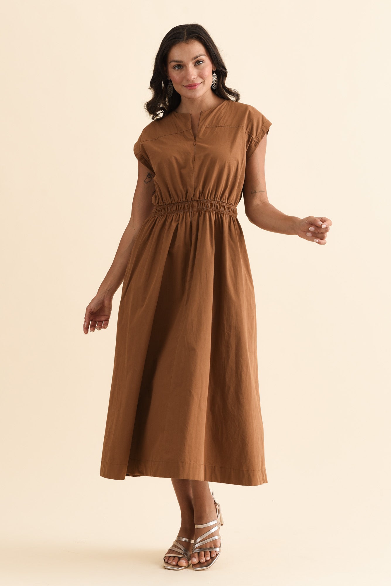 COOPER MOCHA COTTON POCKET DRESS