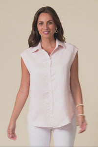 Corbin Pink Linen Blend Button Top