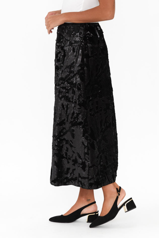 Corinne Black Sequin Midi Skirt