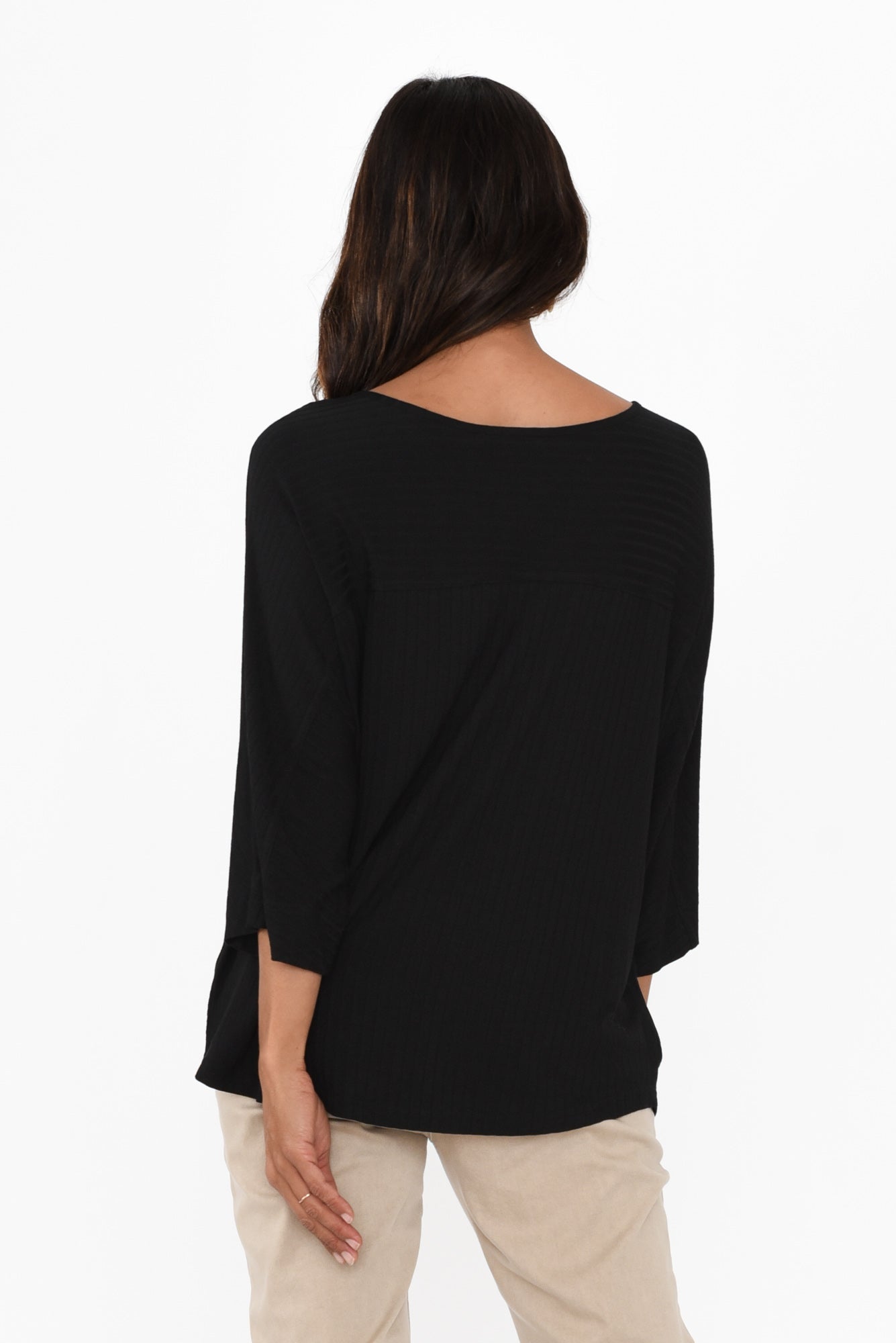 DAHLIA BLACK RIBBED LONG SLEEVE TEE
